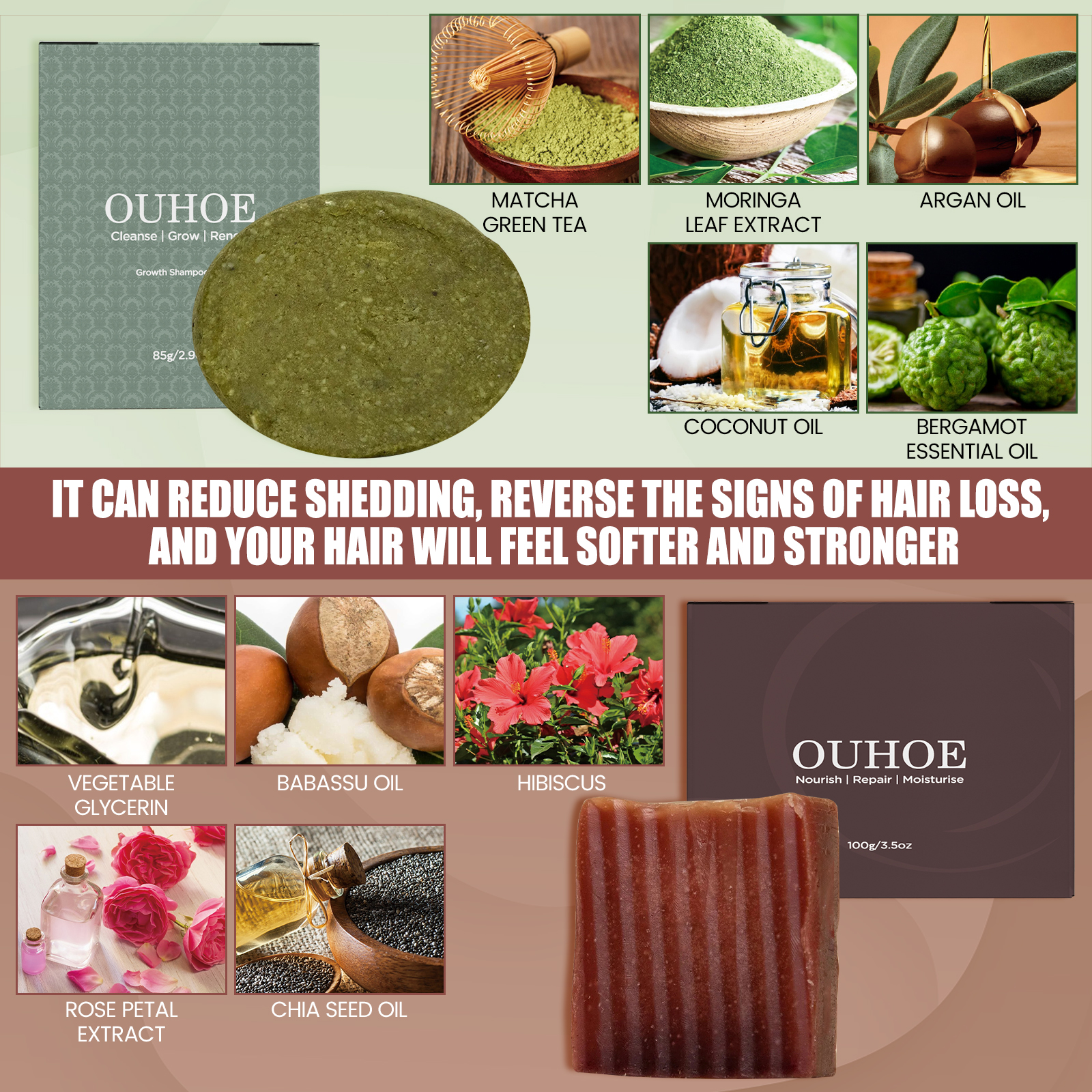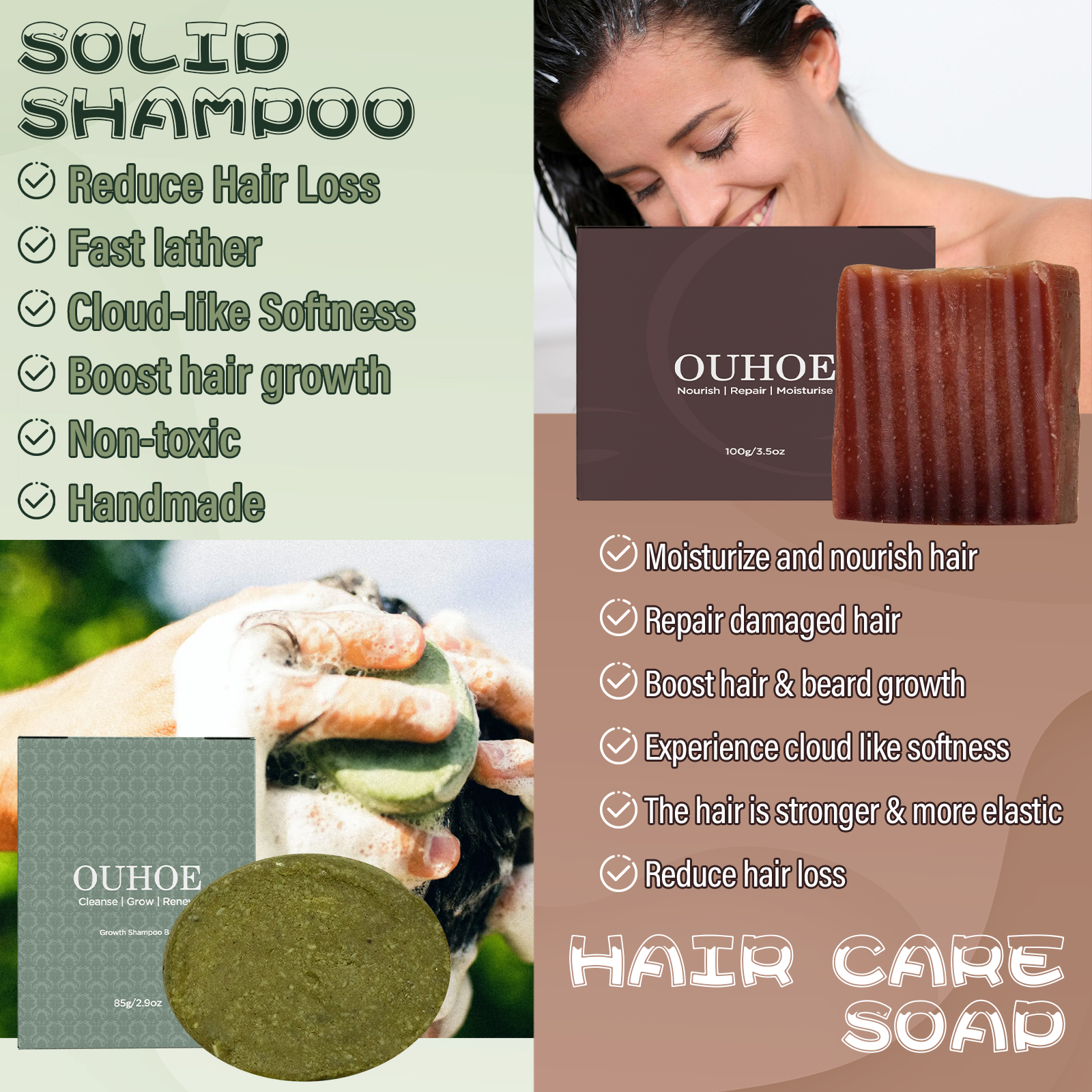 OUHOE Shampoo And Conditioner Soap (Oval Green) Cleanses Hair, Moisturizes Scalp, Repairs Damaged Hair, Reduces Hair Loss And Strengthens Hair