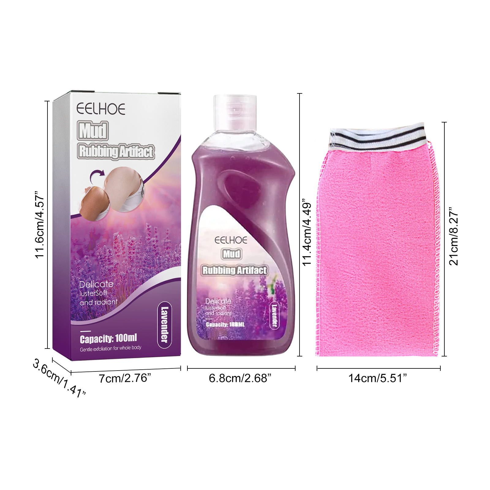 EELHOE Body Exfoliating Gel - Lavender Set, For Skin Cleansing, Back Acne Scrubbing, Improving Dull Skin, Bath Towel
