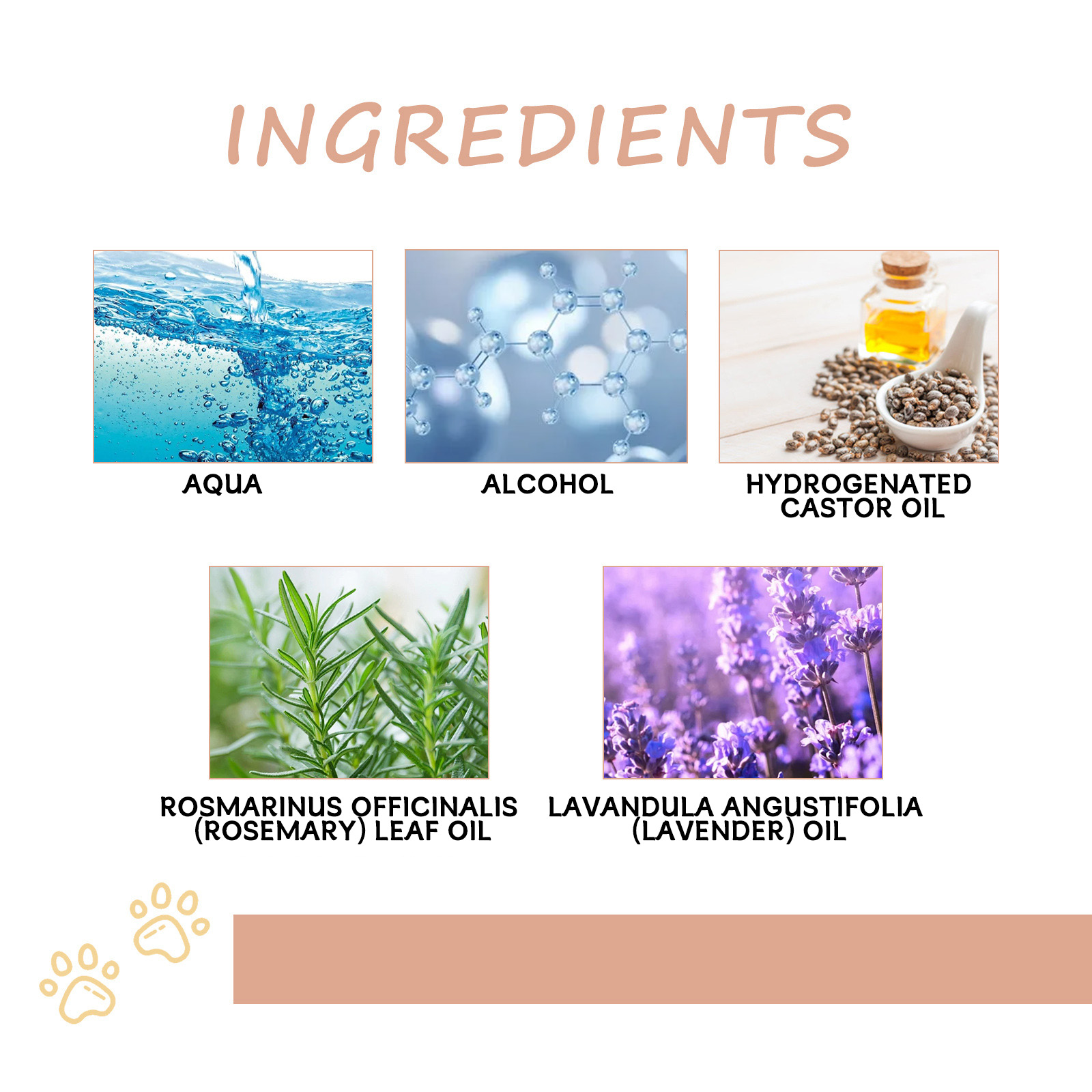 我们的宠物排便诱导剂含有氢化蓖麻油、迷迭香叶油、薰衣草油。它可以运用条件反射原理,教狗在3-5天内定点排泄。它的使用方法很简单:在宠物闻到气味的特定位置喷洒诱导剂。当你的宠物在你指定的区域排便后,鼓励宠物。宠物很容易学会定点排便。