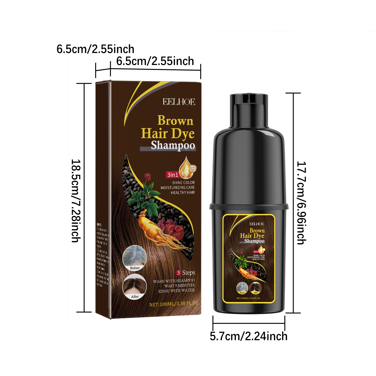 EELHOE Hair Darkening And Dyeing Shampoo (Coffee Color) Is Gentle And Non-Irritating, Moisturizing The Scalp And Easy To Change Colors For Hair Care