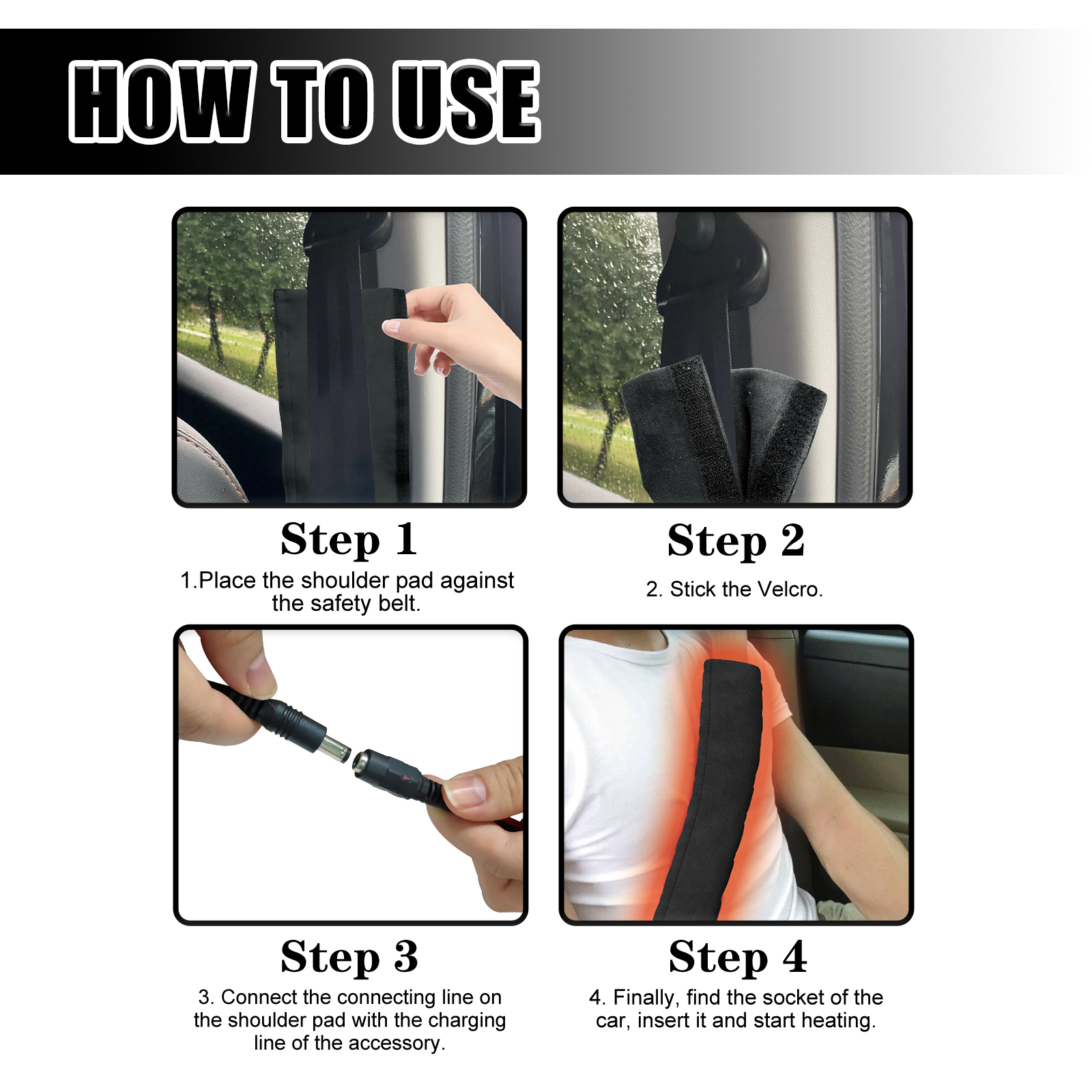 我们的汽车座椅安全带加热肩垫含有绒布。它可以散热保暖,缓解疲劳,减少压痕,缓解压力。它的使用方法很简单:将垫肩靠在安全带上。粘上魔术贴。将肩垫上的连接线与配件的充电线连接。最后,找到汽车的插座,插上,开始加热。驾驶更舒适,肩部恢复正常。