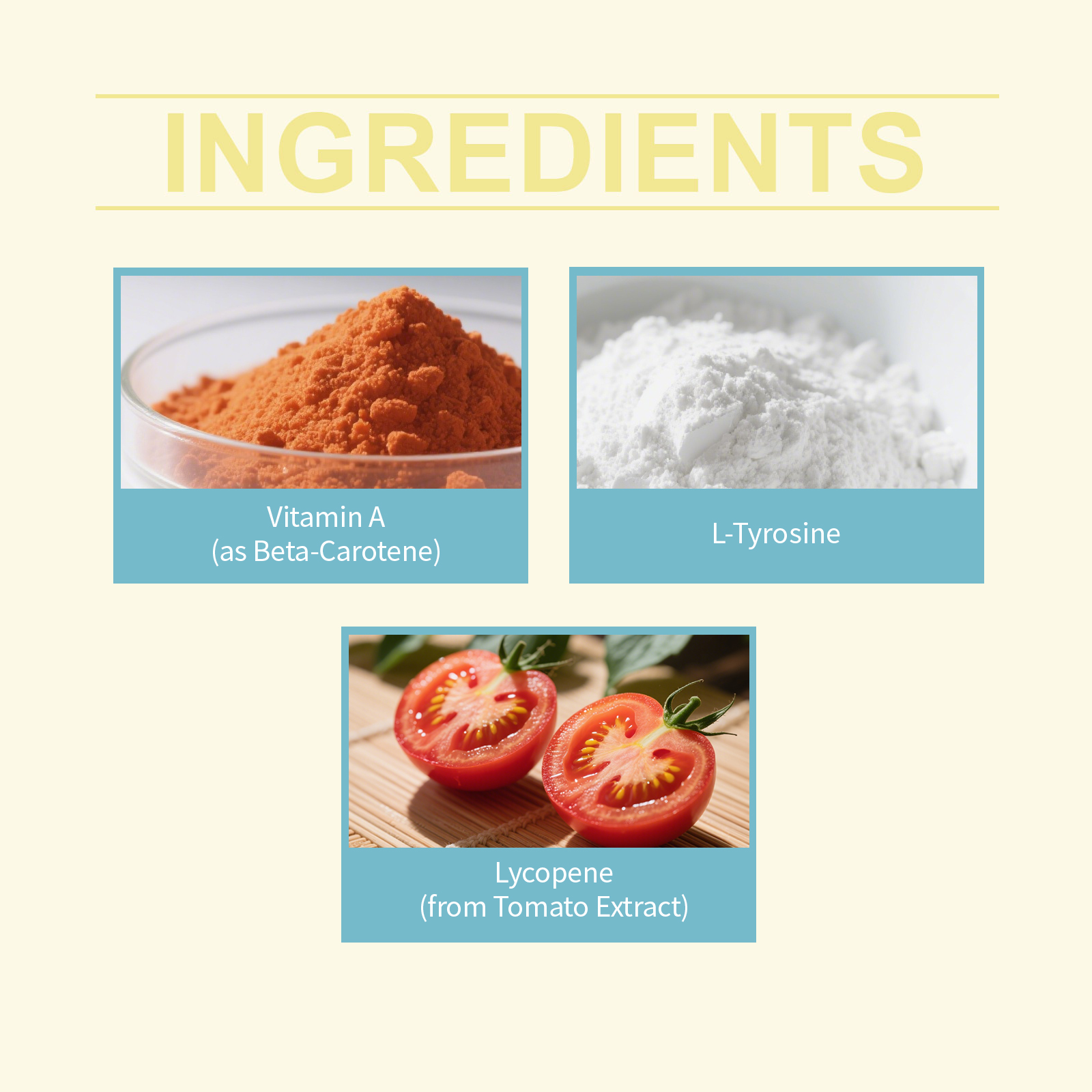 | 成分 | 维生素A(如B-胡萝卜素)、L-酪氨酸 |