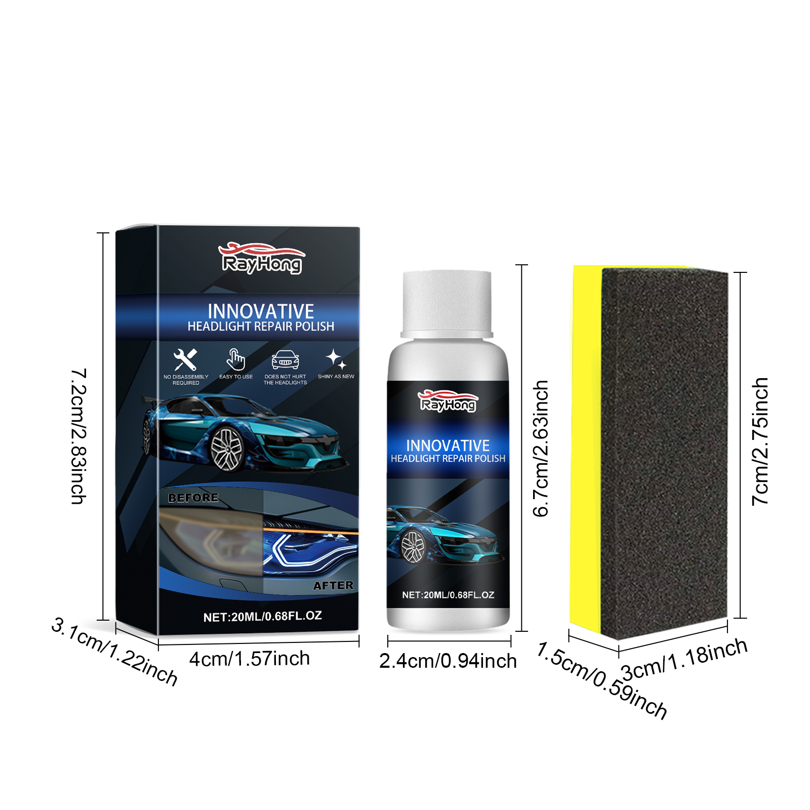 Rayhong Car Headlight Repair Liquid (20ml Box) Car Headlight Crystal Coating Refurbishment And Repair Agent Tool Car Headlight Coating Refurbishment And Repair Agent