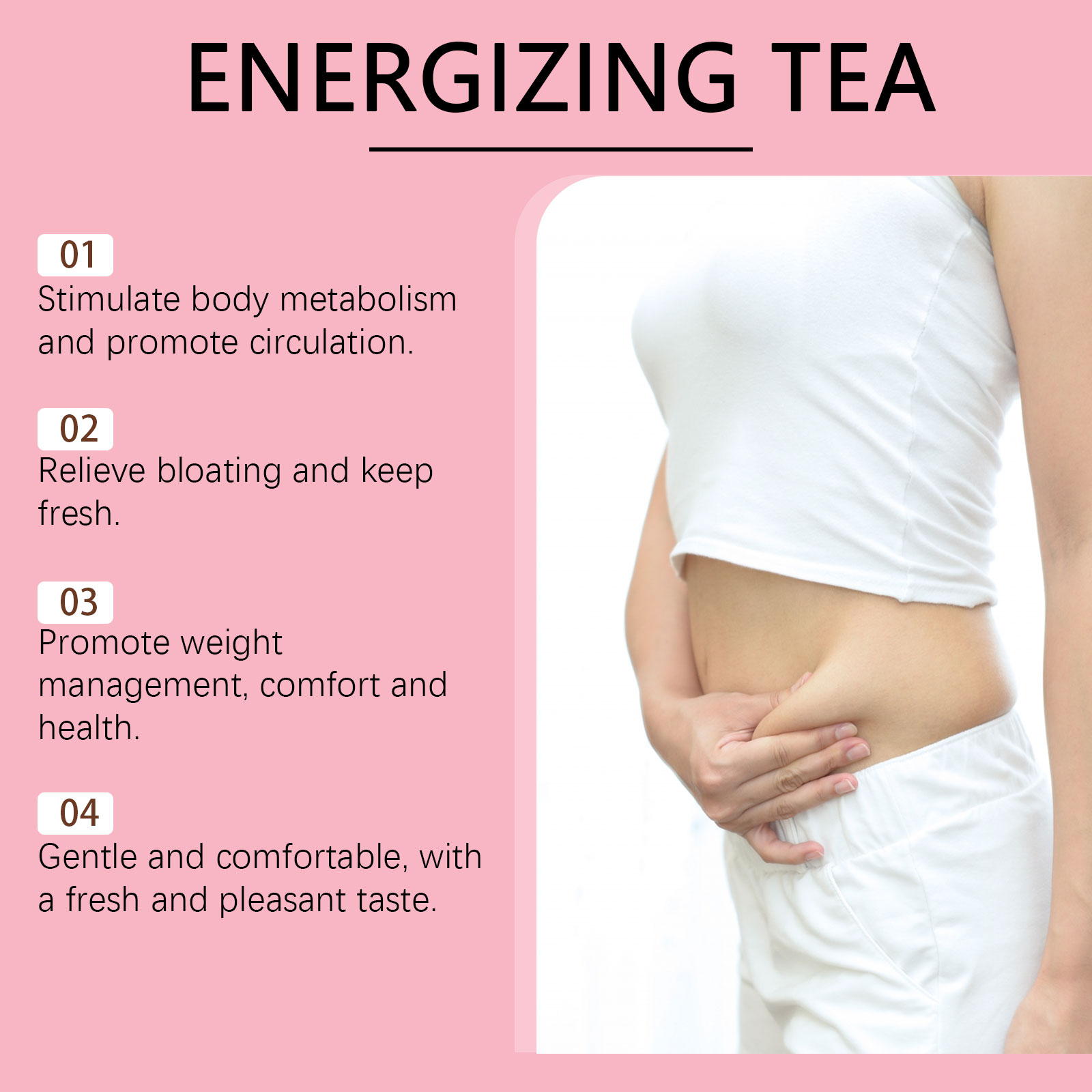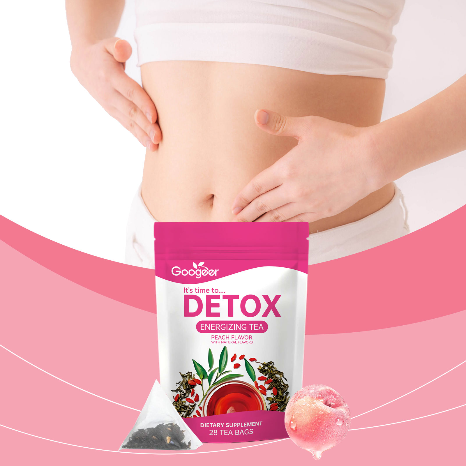 我们的提神茶,由白桃、乌龙茶精心调配而成。专为减少腹胀,恢复身体平衡设计。使用方法极为便捷:将茶包放入杯中,加入约200毫升沸水,浸泡3-4分钟。并且可以加速身体的新陈代谢过程,增强日常活力。