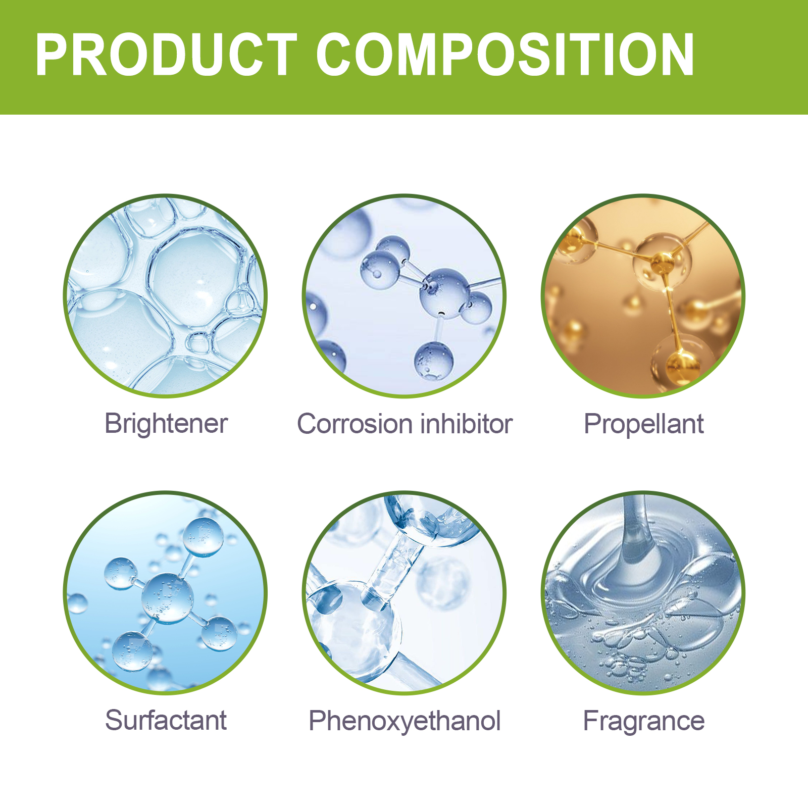 | 成分 | 光亮剂、缓蚀剂、抛射剂 |