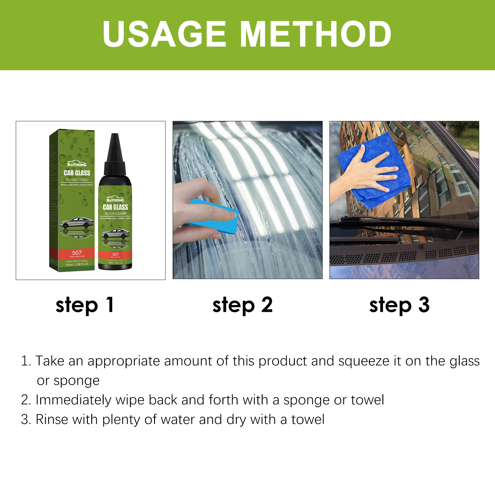Rayhong Car Glass Oil Film Cleaner, Windshield Maintenance To Remove Oil Rain And Fog Cleaning Agent