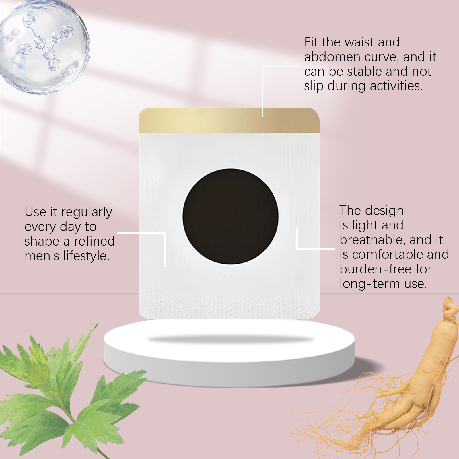 我们的男士草本护理贴,由液体石蜡、微晶蜡精心调配而成。专为恢复青春活力,延缓男性器官衰老,促进血液循环设计。使用方法极为便捷:清洁腹部皮肤并保持干燥,将产品贴在肚脐上,轻轻按压以确保粘附,放置8-12小时后再撕掉。并且它可以有效缓解压力,解决男性从心理到生理的健康问题。