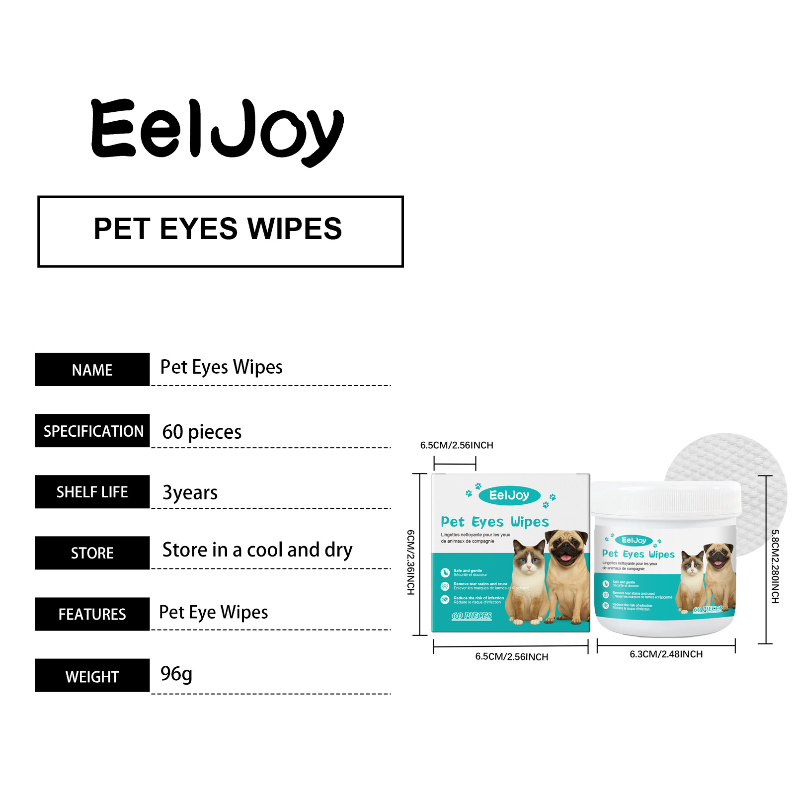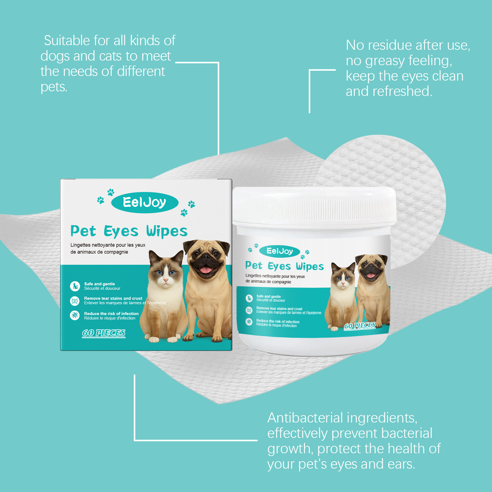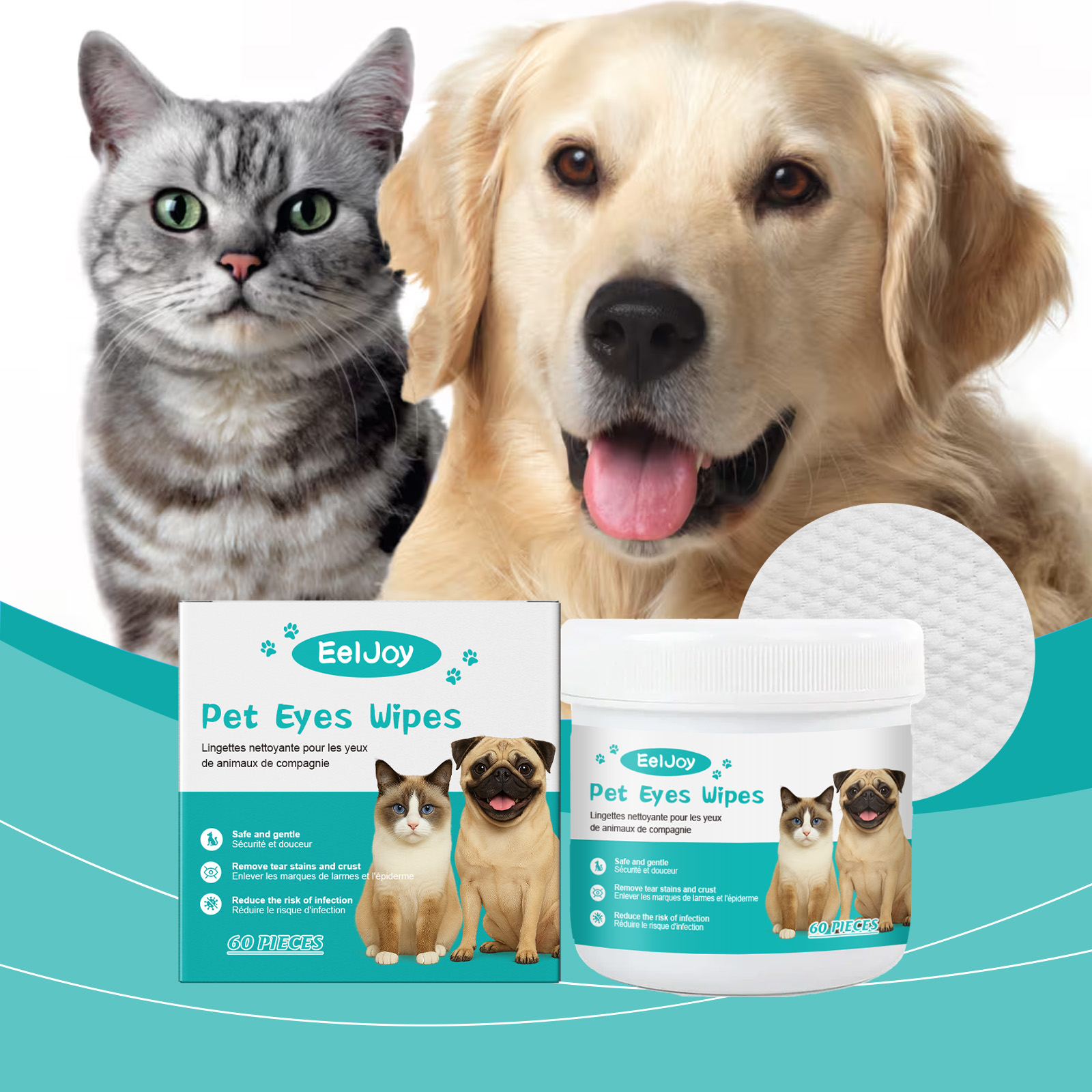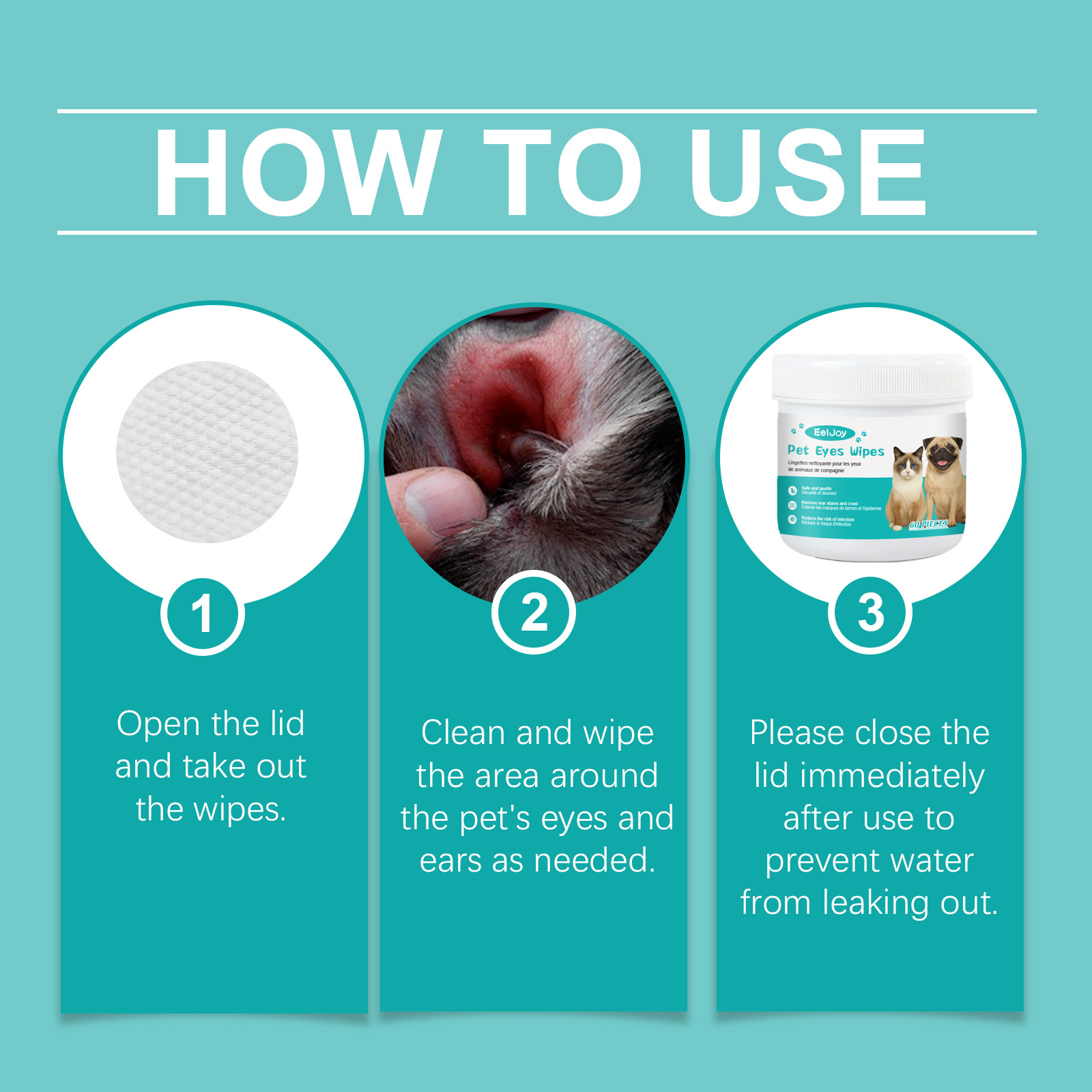 EelJoy Pet Ear And Eye Wet Wipes, Gently Clean Pet Tear Stains. Pet Eye And Ear Wet Wipes Care