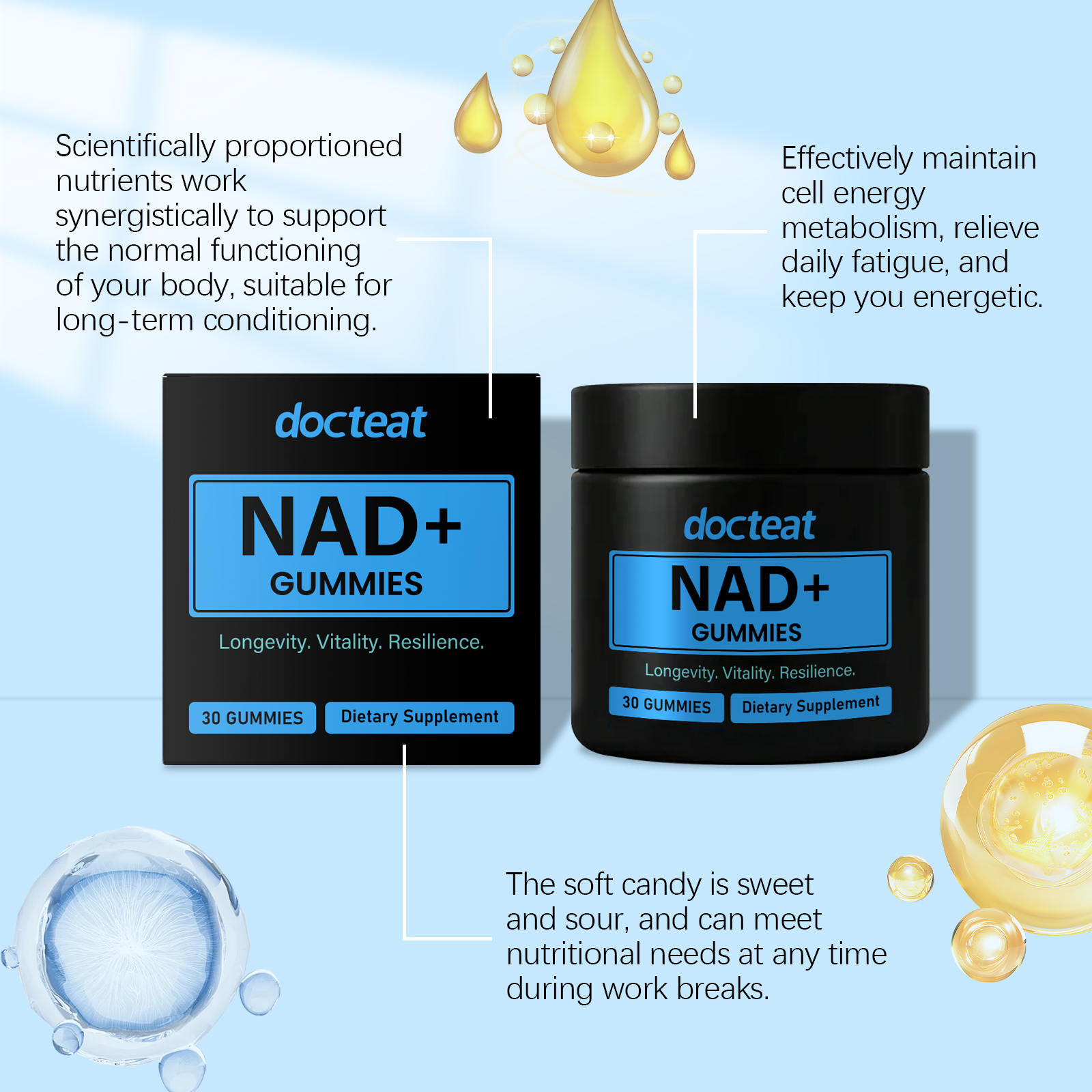 Docteat Nad+ Gummy Candies, Rich In Nutrients That Help Maintain Vitality And Can Be Easily Replenished Daily