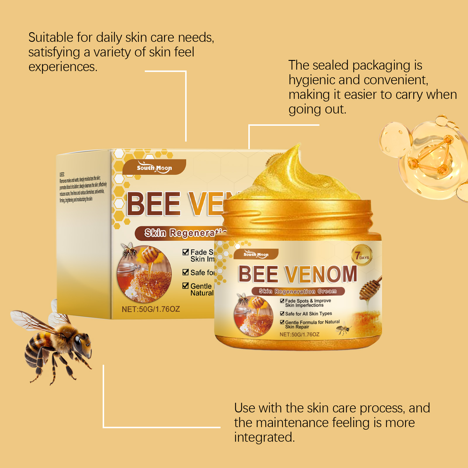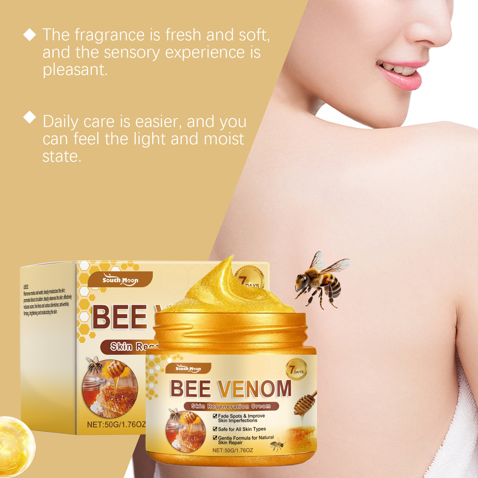 South Moon Bee Venom Multi-Effect Skin Care Cream, Moisturizing, Hydrating, Smooth And Delicate Gentle Skin Care Cream