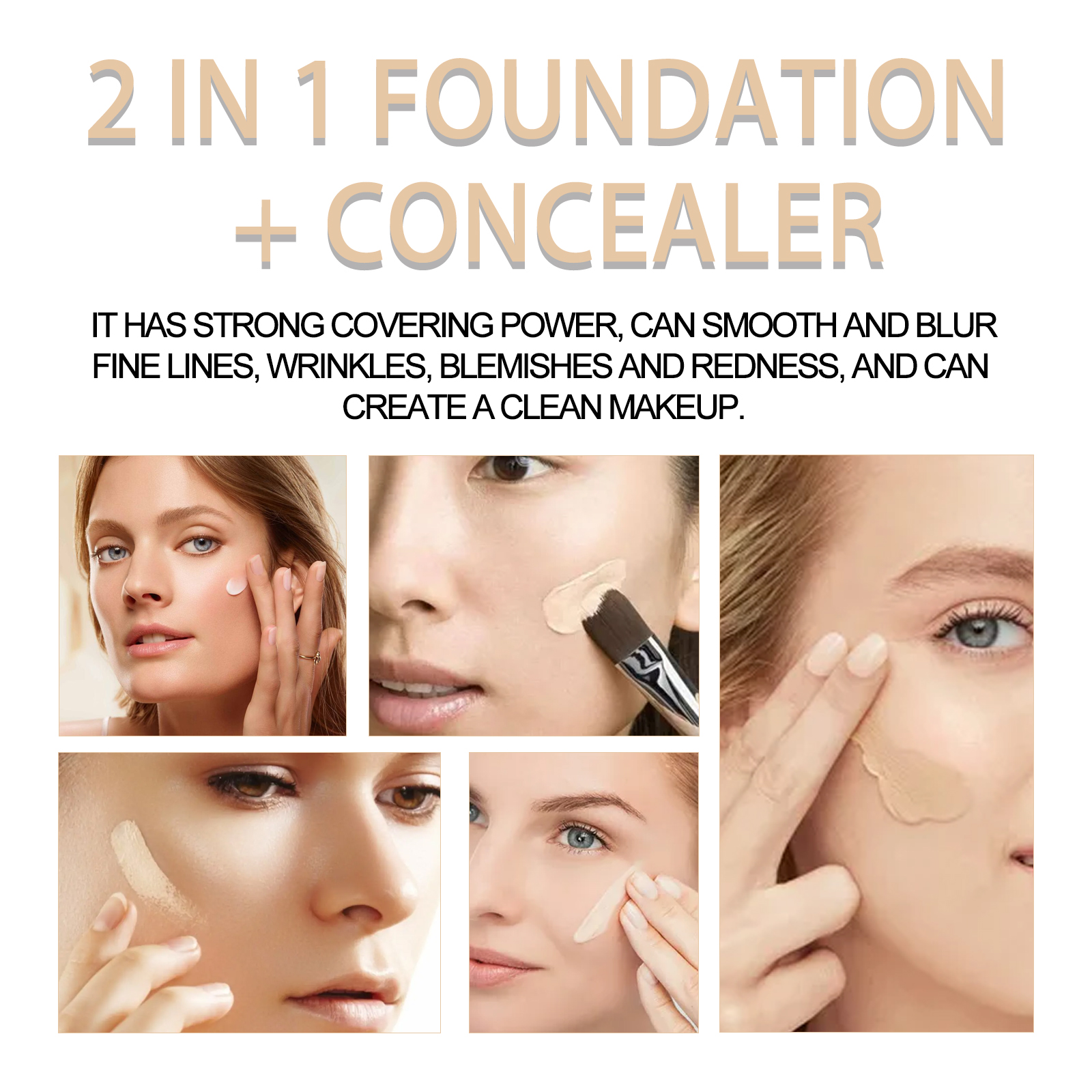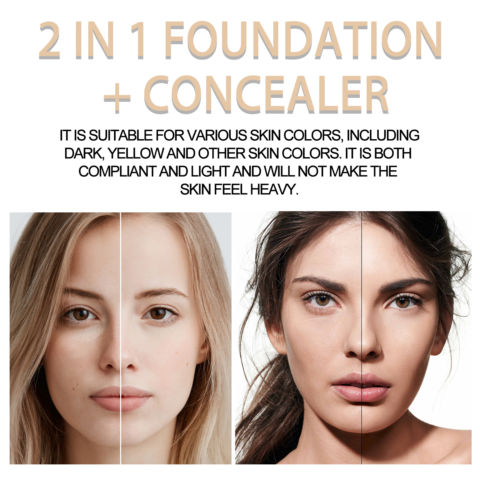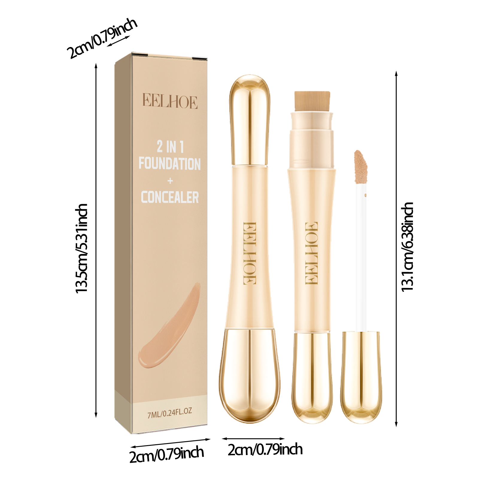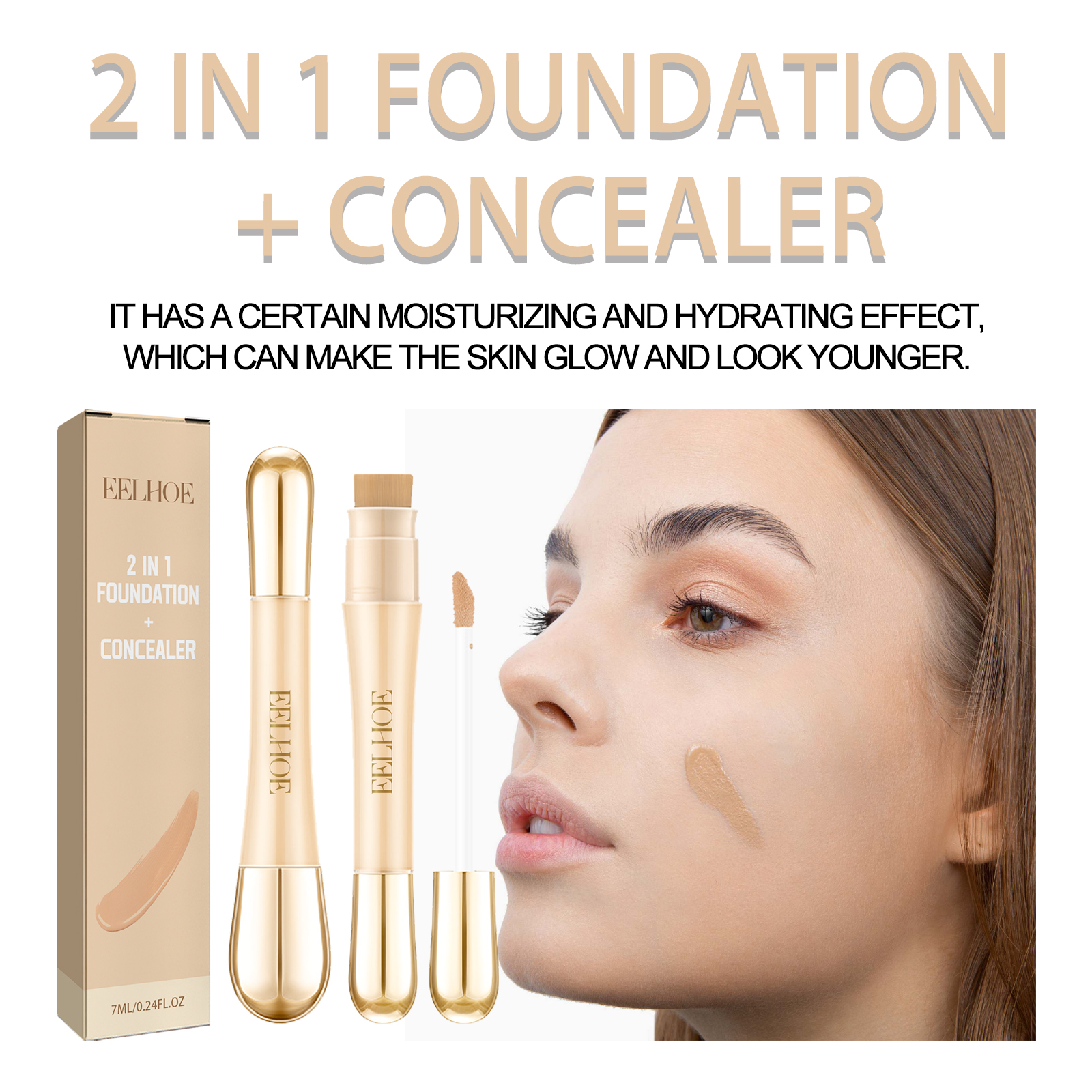 EELHOE 2 In 1 Foundation + Concealer, Moisturizing Natural Brightening Concealer Spot Acne Print Moisturizing Two-Head Concealer