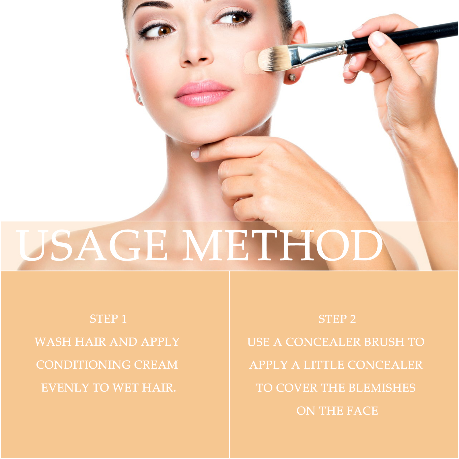 我们的双头遮瑕膏含有视黄醇、乳木果油、二氧化钛。它可以可以抚平和模糊细纹,皱纹,瑕疵和发红,并可以打造一个干净的妆面。它的使用方法很简单:洁面爽肤后,先用超细纤维刷上完粉底液,再用遮瑕刷蘸取适量的遮瑕膏遮盖脸上的瑕疵可以自然提亮暗沉肌肤,遮盖面部瑕疵,使妆容更加自然干净。