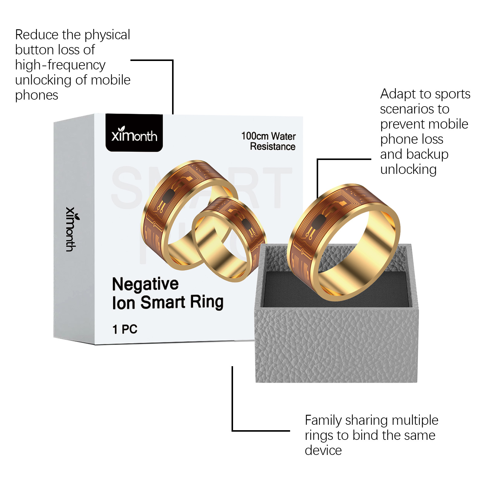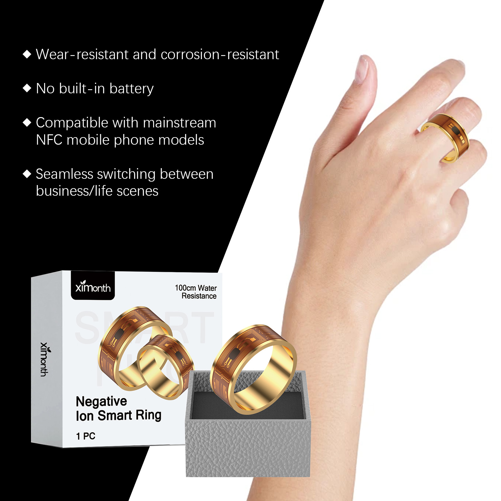 Ximonth Ring, Nfc Electronic Business Card Access Control And Attendance Compatible, No Charge Required, Business Portable, Multi-Functional Touch Control