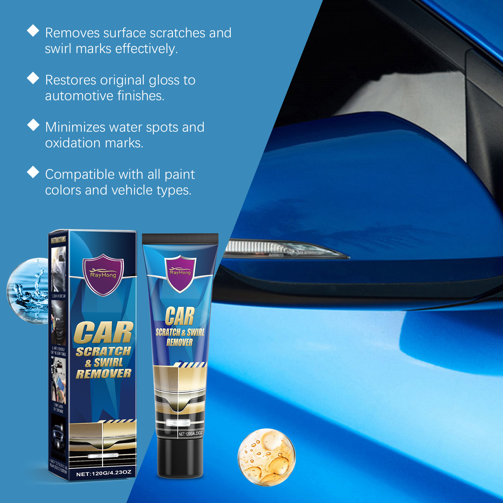 Rayhong Car Scratch Repair Cream, Car Maintenance Refurbishment Paint Scratches Scratches Polishing Paint Repair Paste