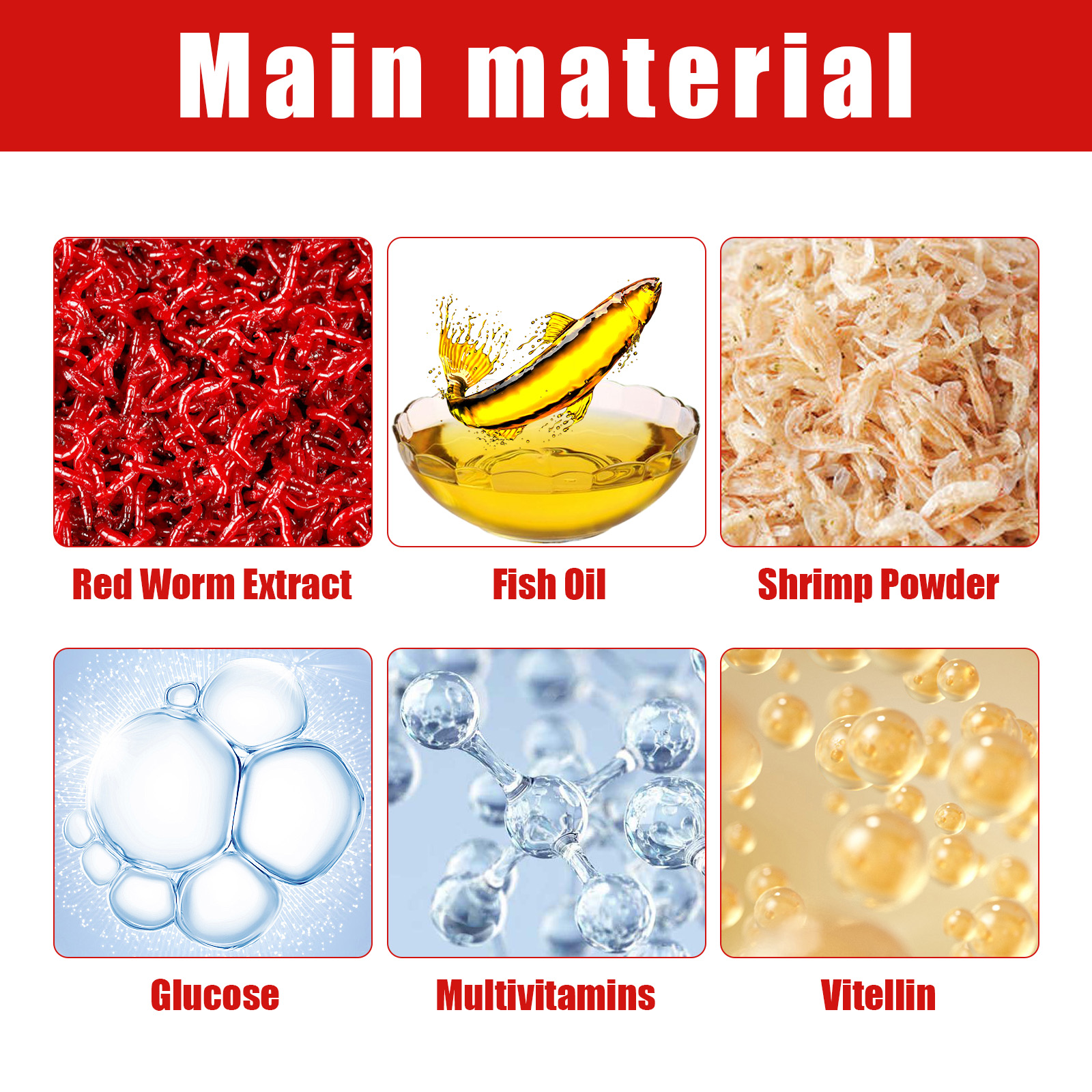 我们的鱼诱剂含有红虫提取物、鱼油、虾粉。它可以散发出使鱼难以抗拒香味,刺激它们的嗅觉,吸引鱼靠近,增加它们咬饵的可能性。它的使用方法很简单:取适量诱鱼剂,直接倒入水中或与鱼饵混合即可。可以改善饵料的食性使鱼类更容易咬钩。