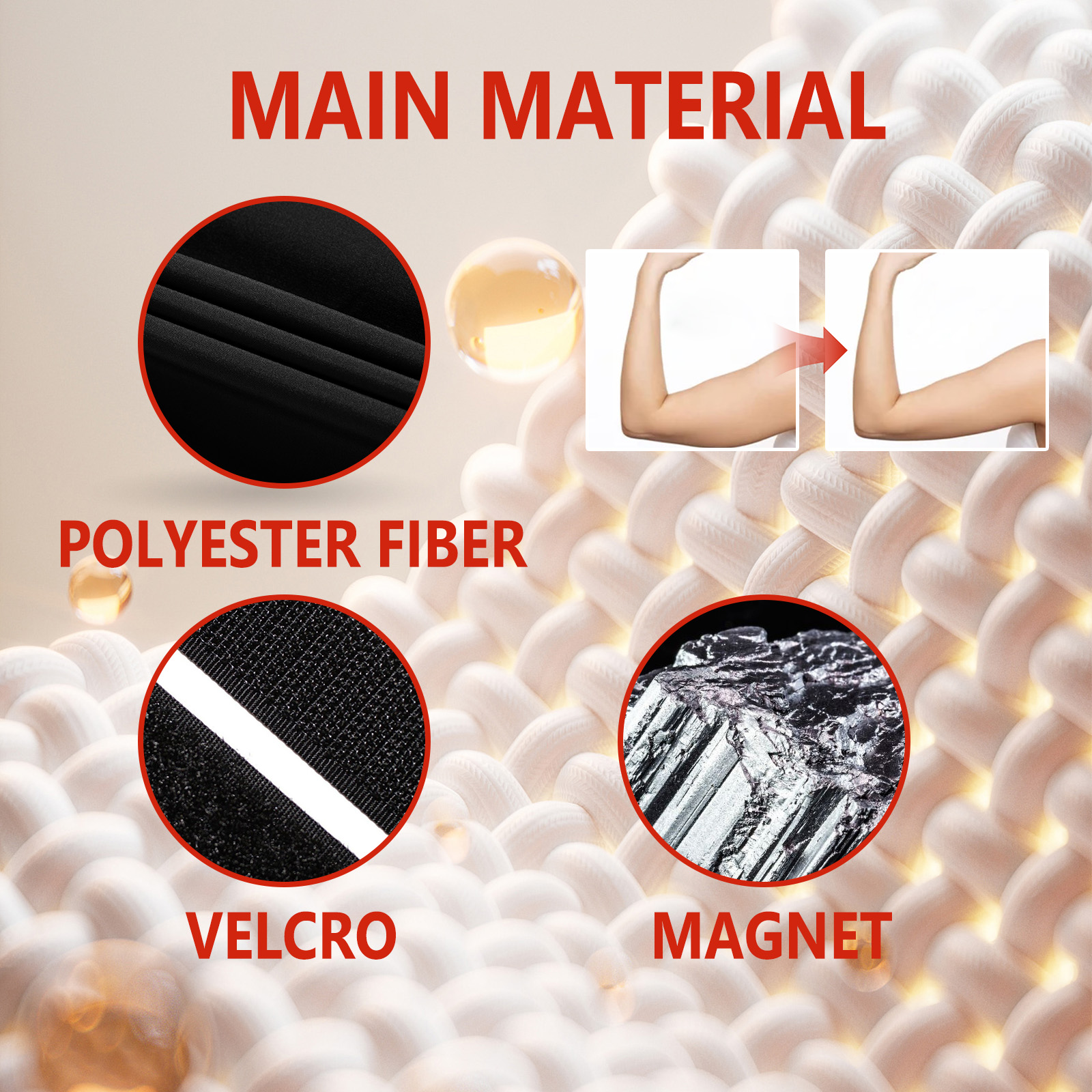 我们的小型骨架摩擦器含有聚酯纤维90%、磁石5%、魔术贴5%。它可以解决脂肪和肿胀问题,改善你的新陈代谢,轻松塑形。它的使用方法很简单:将产品戴在双臂上使用即可。可以减少脂肪团,加速脂肪的燃烧,收紧肌肤。
