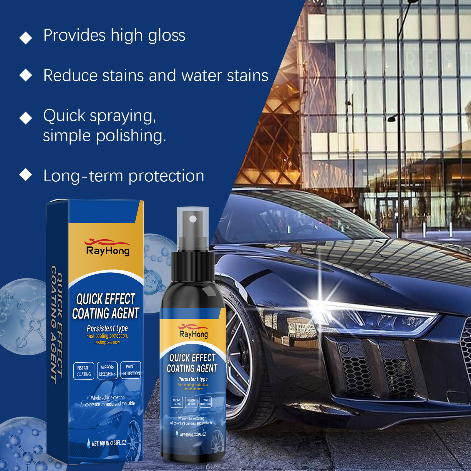 Rayhong Car Coating Spray, Car Paint Coating Spray, Cleaning And Maintenance, Gloss, Anti-Fouling And Dirt-Resistant, Car Care