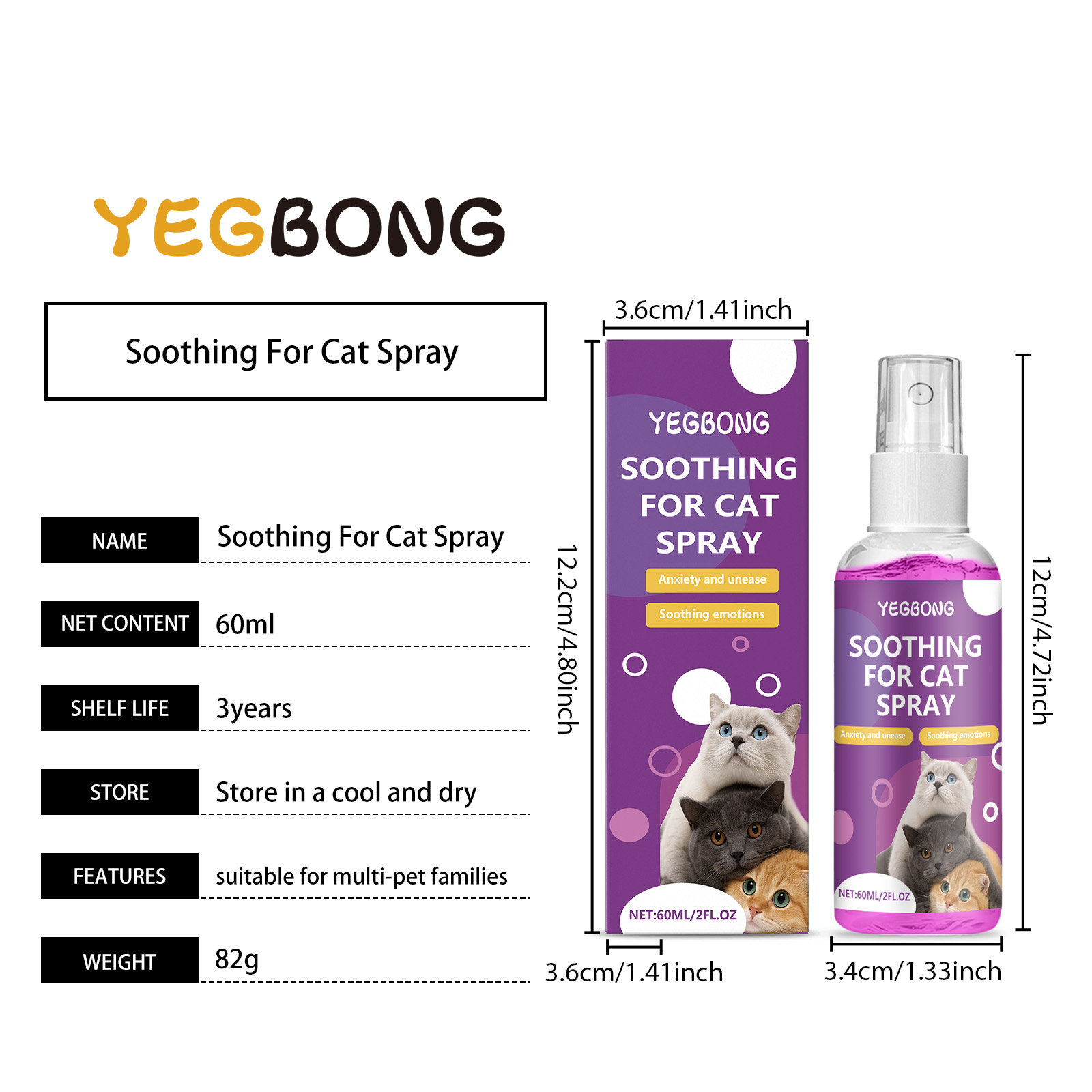 Yegbong Cat Protection Spray, Relieves Stress, Guides Behavior, Prevents Furniture Scratches, And Is Suitable For Multi-Pet Families