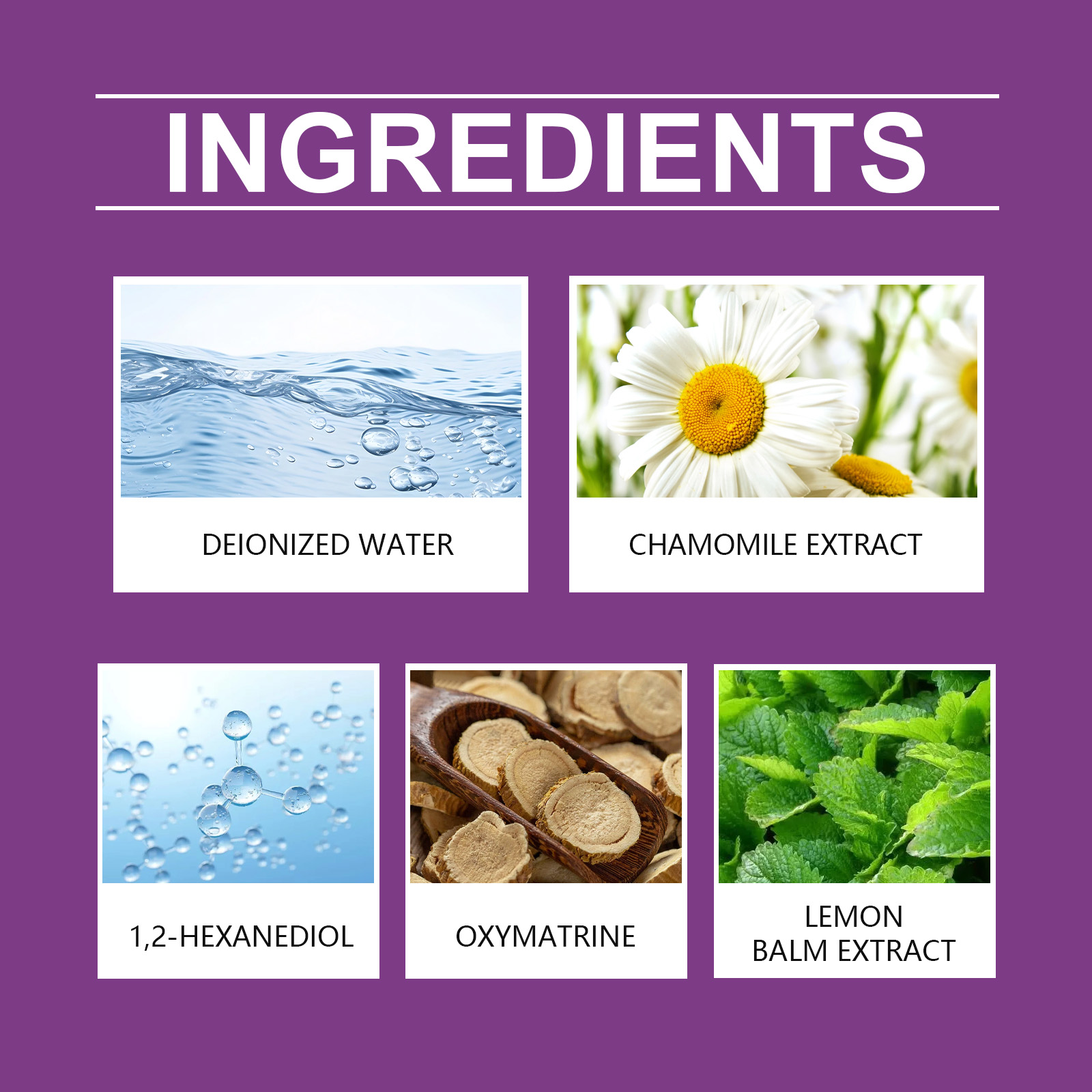 | 成分 | 洋甘菊提取物、柠檬香蜂草提取物 |