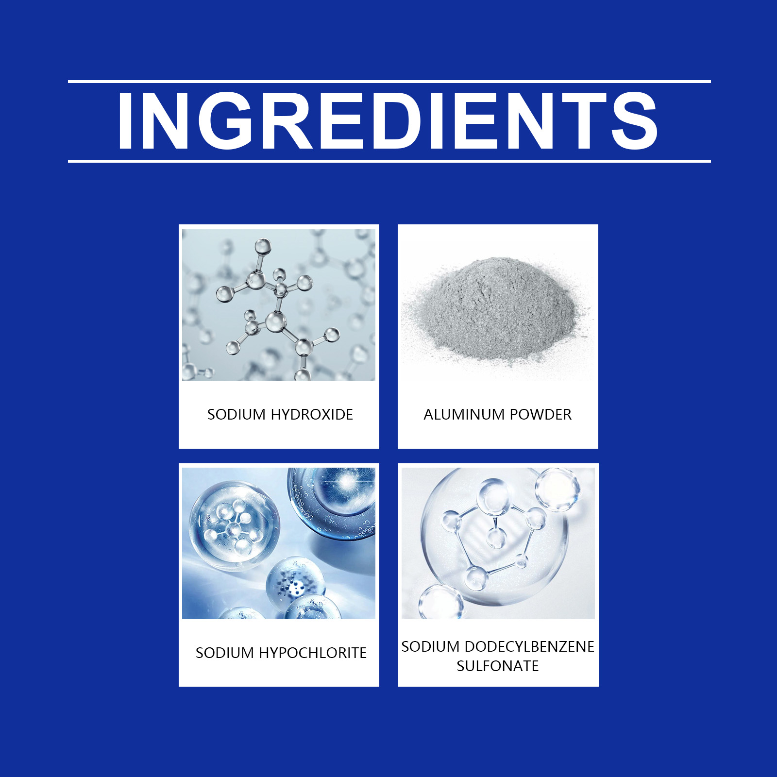 我们的排水管疏通粉,由氢氧化钠、铝粉精心调配而成。专为消除管道异味,保持空气清新,长期疏通,防止堵塞和异味再次出现设计。使用方法极为便捷:取适量的该产品并将其倒入排水管。加入适量的热水等待5分钟使其溶解。用大量水冲洗掉污垢。并且它可以快速溶解头发、油脂、肥皂污垢和食物残渣,恢复管道的顺畅流动。有效地分解各种顽固的堵塞,以确保管道的顺畅流动。