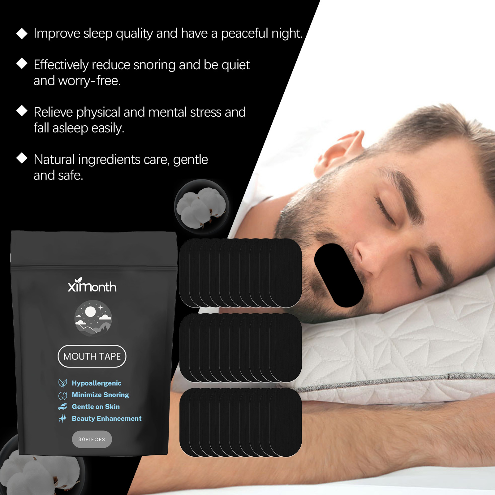 Ximonth Anti-Snoring Sleep Patch, Anti-Snoring Night Care, Comfortable And Breathable Sleep, Adult Anti-Snoring Care Patch