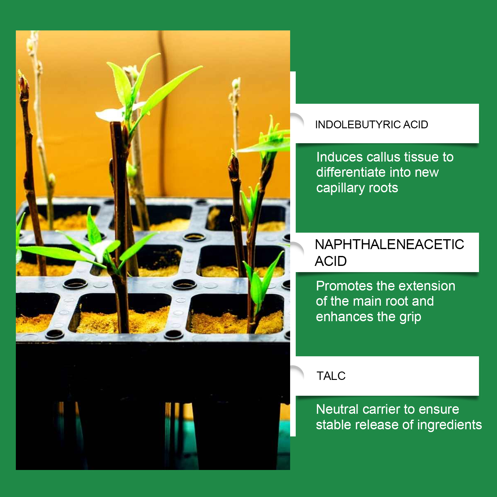 | 成分 | 滑石粉、吲哚丁酸 |