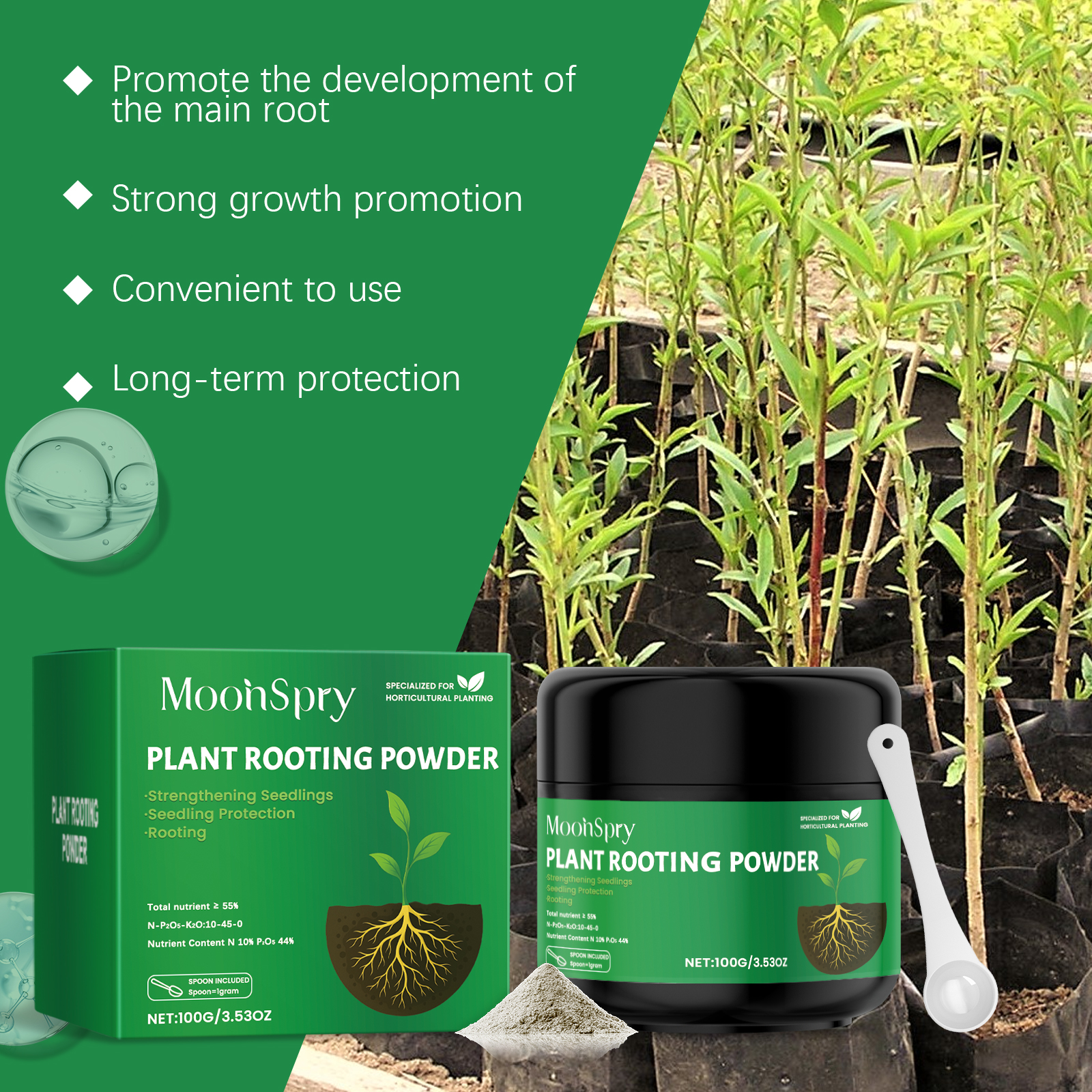 MoonSpry Rooting Powder, Plant Flowers And Promote Root Seedling Improve Art Home Gardening Green Plant General Maintenance