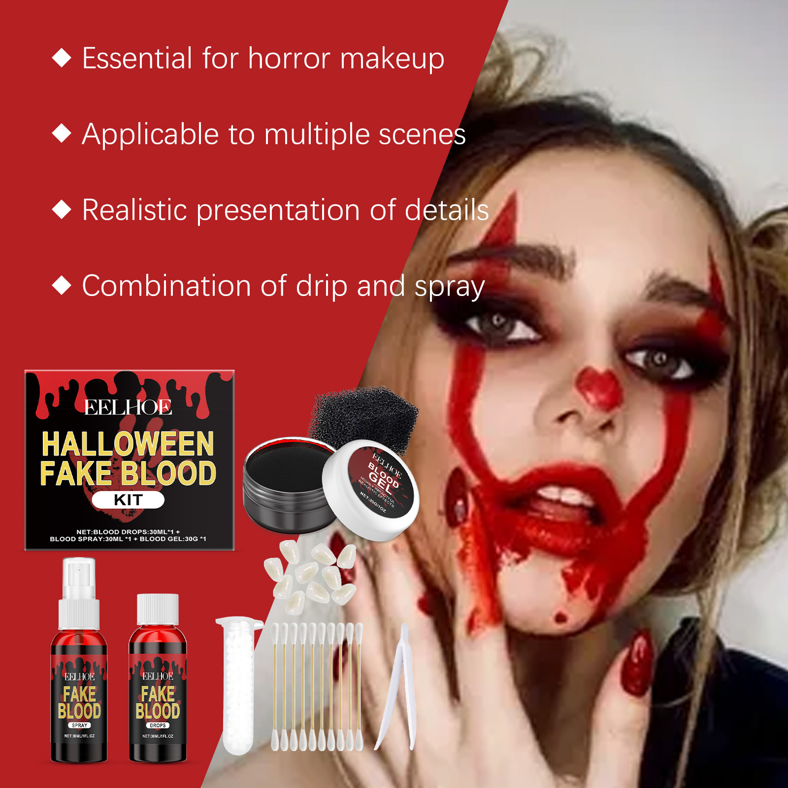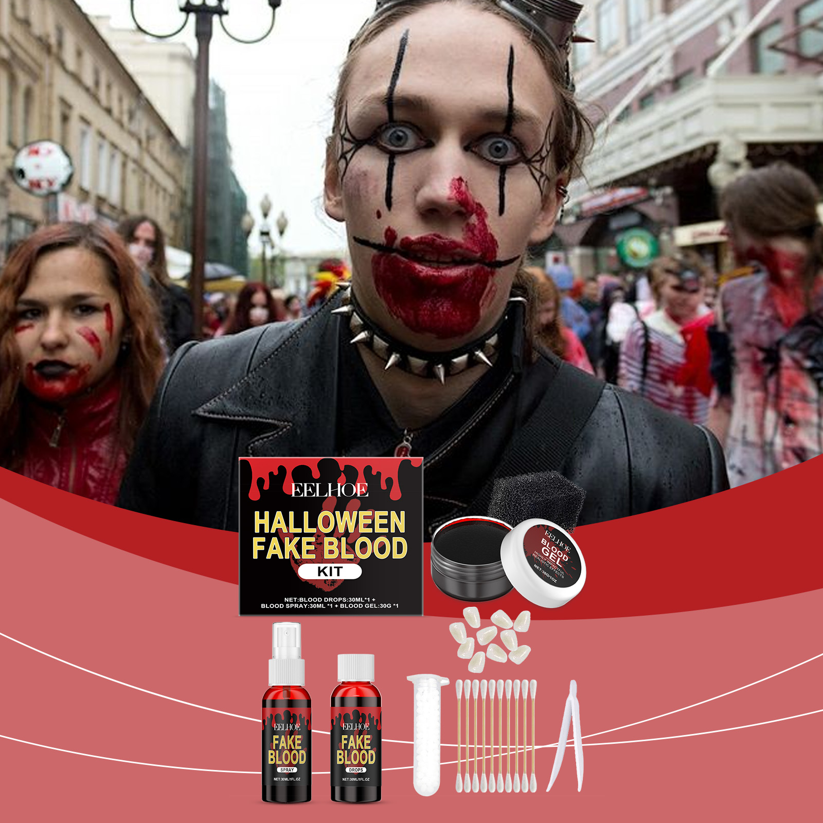 EELHOE Halloween Fake Blood Set, A Realistic Fake Blood Costume With A Festive Atmosphere And Special Effects Makeup Set