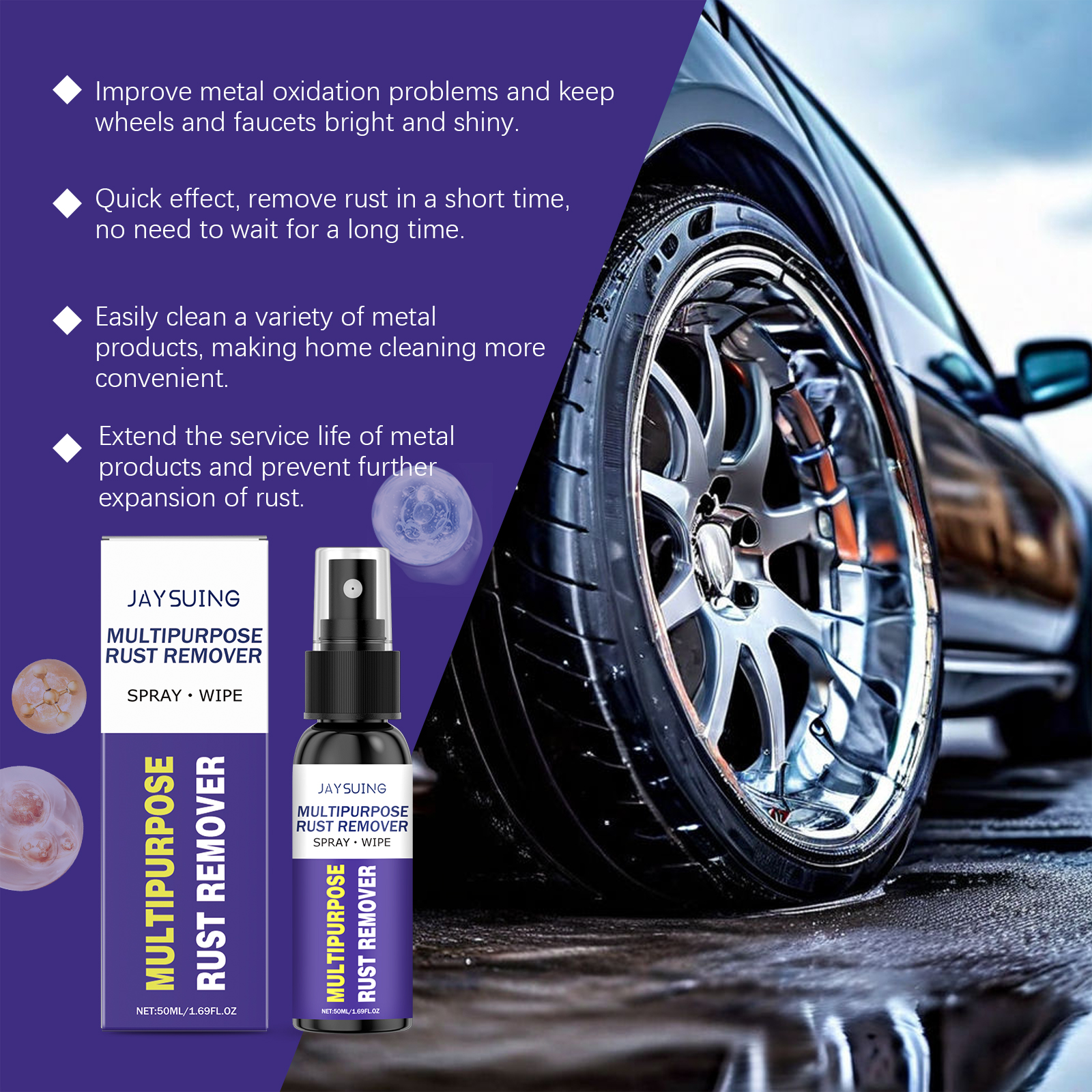 Jaysuing Metal Rust Remover (50ml), Multi-Functional Car Wheel Hub Polishing And Refurbishing Agent, Faucet Stainless Steel Rust Remover