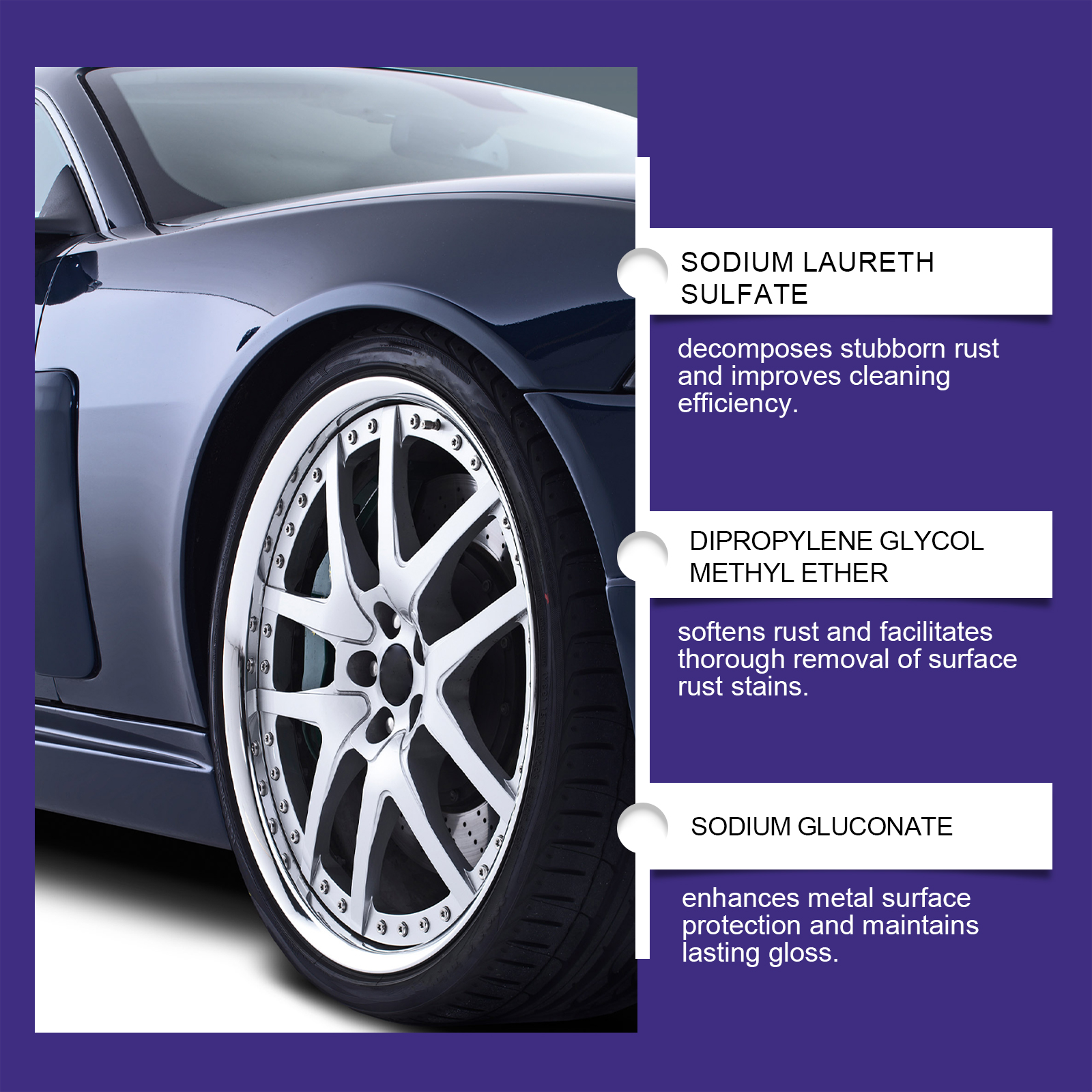 我们的金属除锈剂(50ml)含有月桂醇聚醚硫酸酯钠、二丙二醇甲醚。它可以去除金属锈迹,快速除锈清洁和保护,恢复光泽。它的使用方法很简单:将产品喷在需要施工的铁锈上,可以用刷子擦一擦,加速分解,用清水冲洗干净,用毛巾擦干就可以了。这会留下一层薄薄的蜡质薄膜,附着在金属上长达数月保护金属表面不被氧化!恢复光泽防止再次生锈。