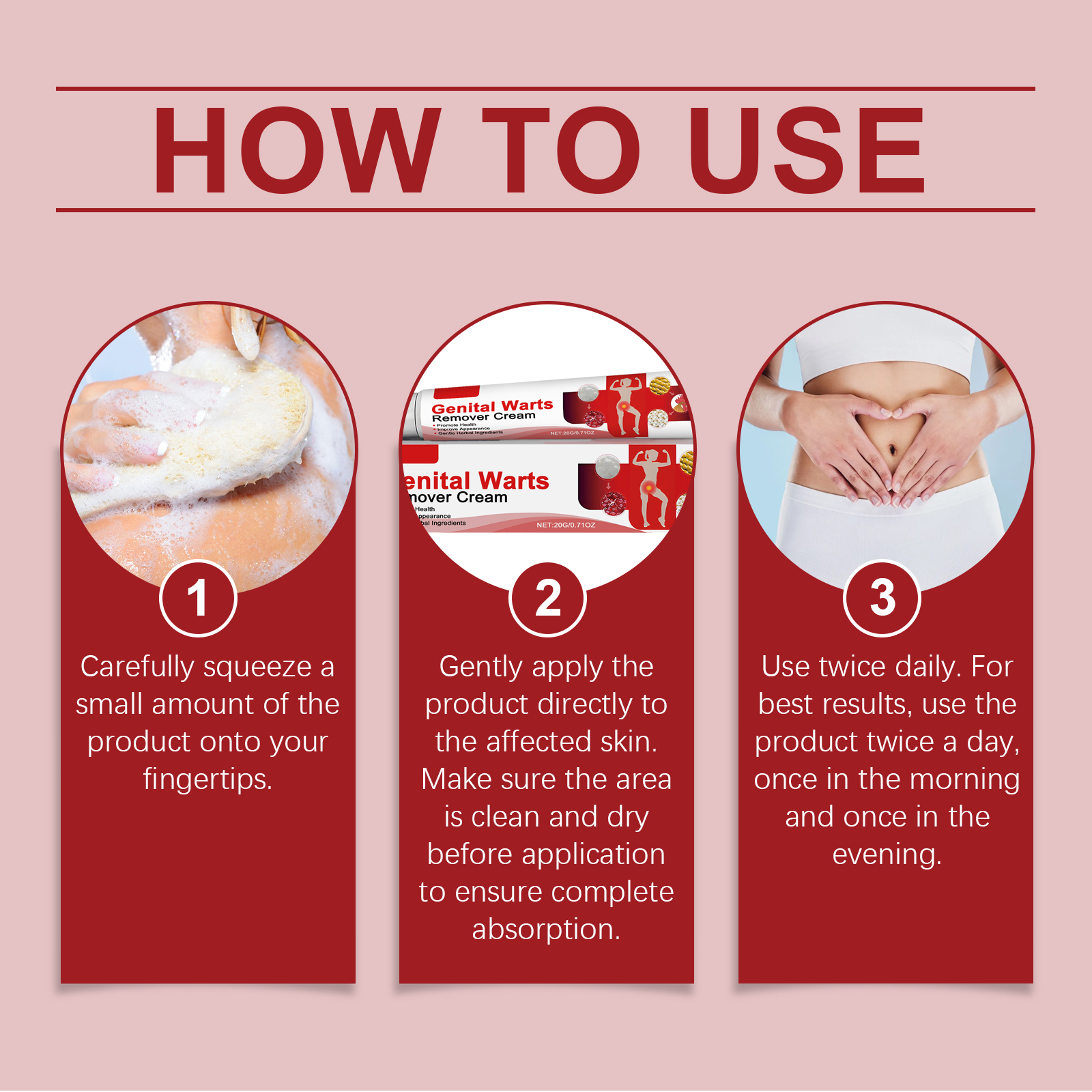 我们的女性身体护理霜,由茶树油、薄荷叶精心调配而成。专为缓解皮肤不适设计。使用方法极为便捷:小心地将少量产品挤到指尖。轻柔地将本品直接涂抹于受影响的皮肤上。在涂抹前,请确保该区域干净且干燥,以确保完全吸收。每天使用两次。为了达到最佳效果,每天使用两次,早晚各一次、。并且采用精心调理,并逐渐改善皮肤状况。