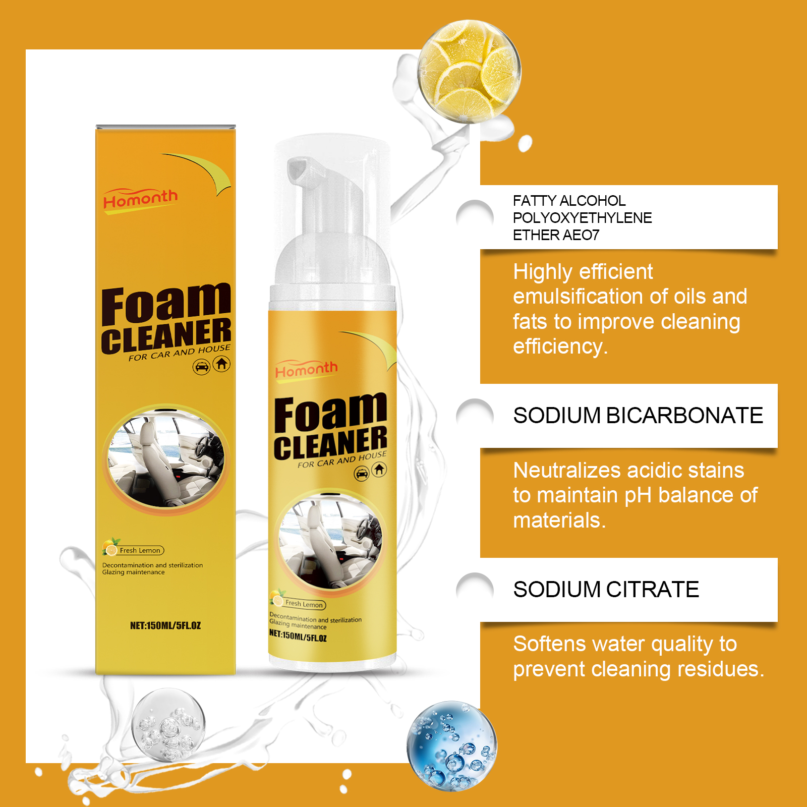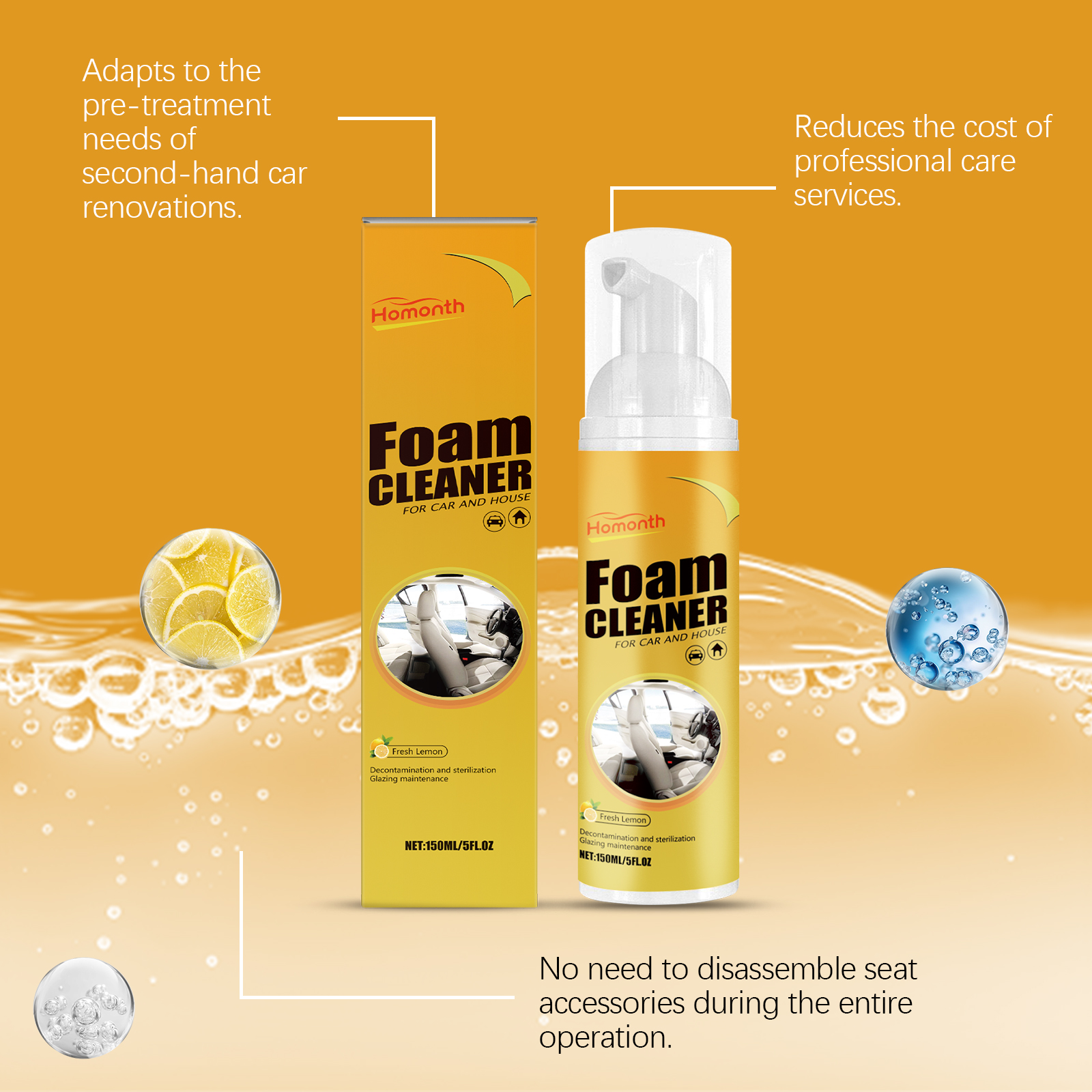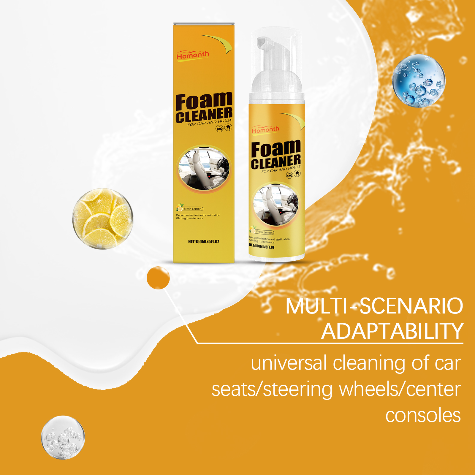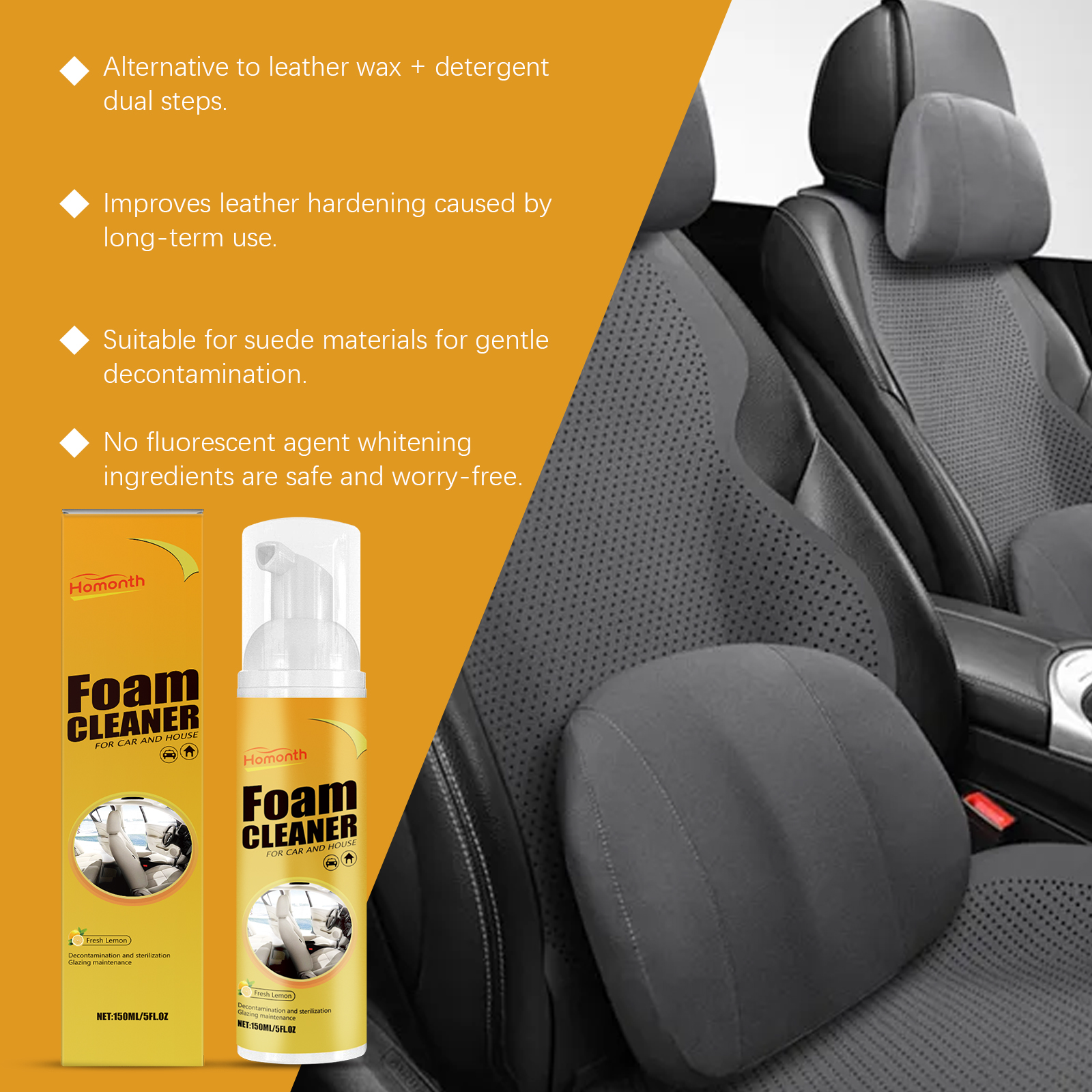 Homonth Multi-Functional Foam Cleaner Is A Car Interior, Seat And Steering Wheel Stain Remover
