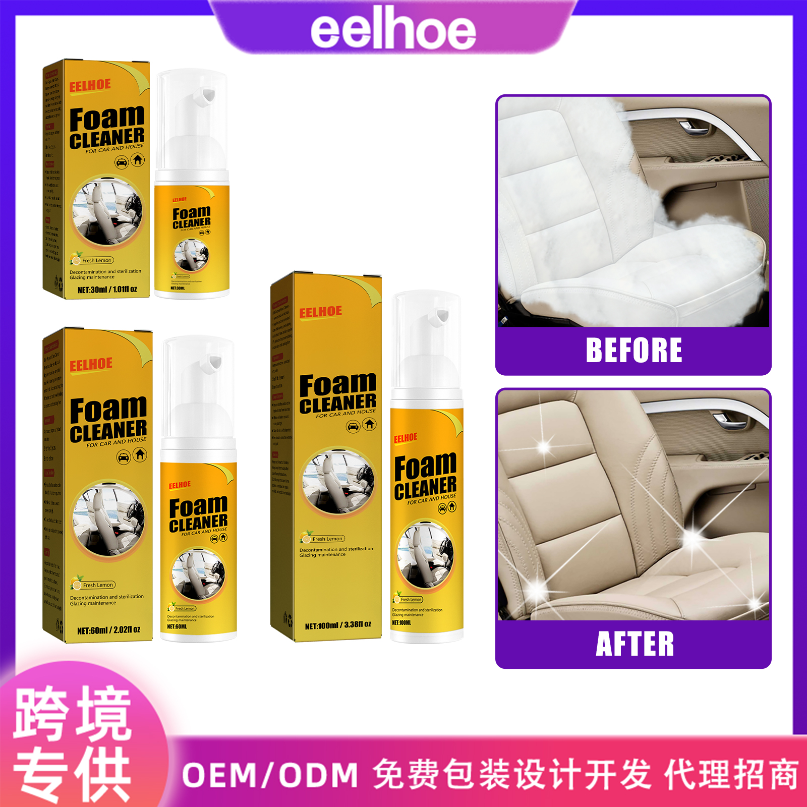 EELHOE Foam Cleaner, Leather Seat Supplies Decontamination Multi-Functional Interior Cleaner