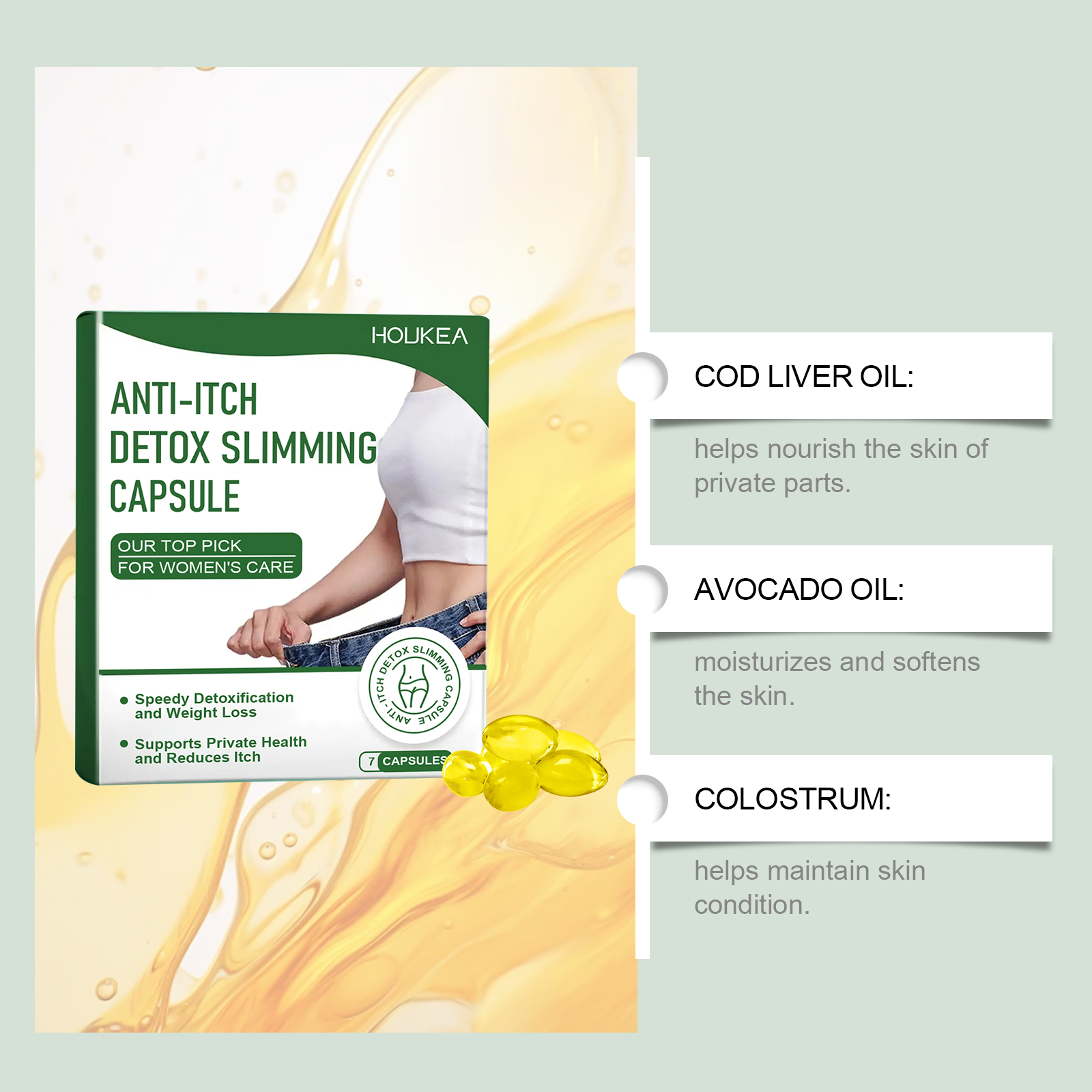 Houkea Women's Care Capsules Gently Cleanse, Care For And Moisturize The Skin. Daily Body Care Capsules For Women
