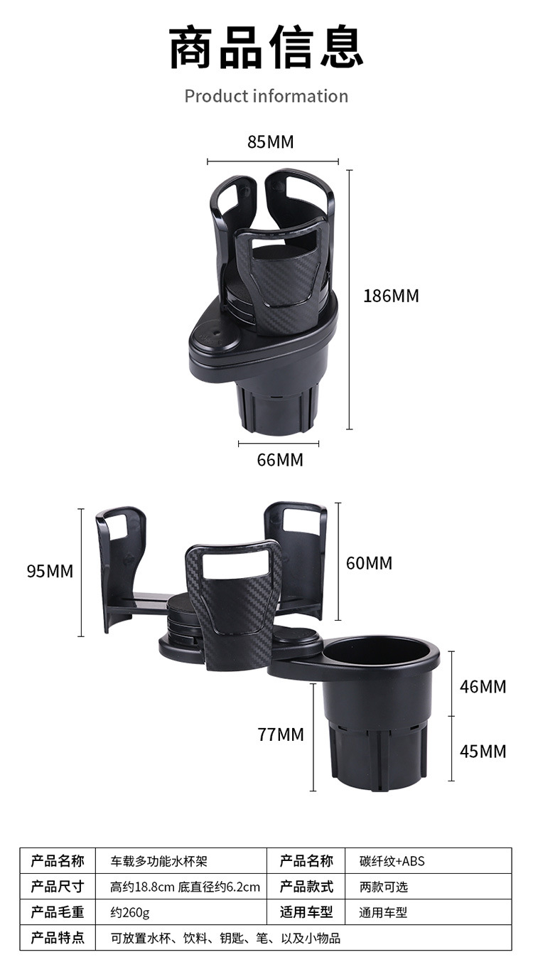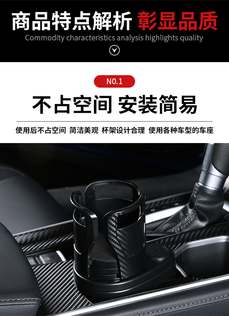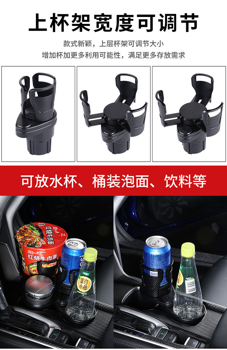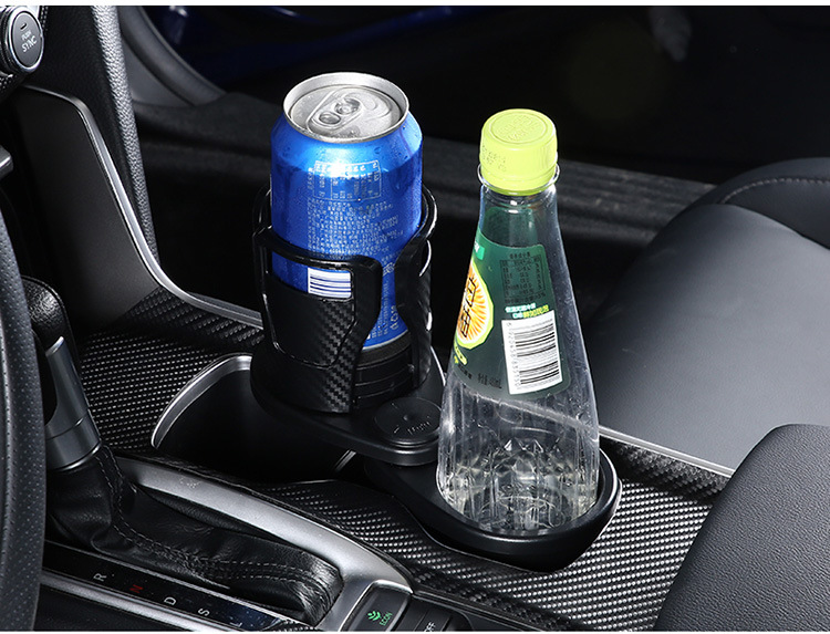 Cross-Border Bestseller Multi-Functional Car Water Cup Holder (Carbon Fiber Black), 1 Split 2 Double-Layer Storage Rotating Car Beverage Cup Holder In Stock