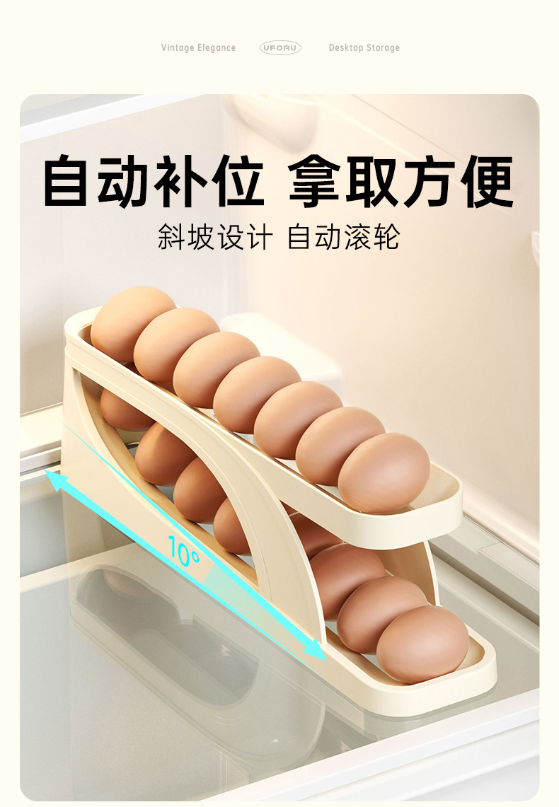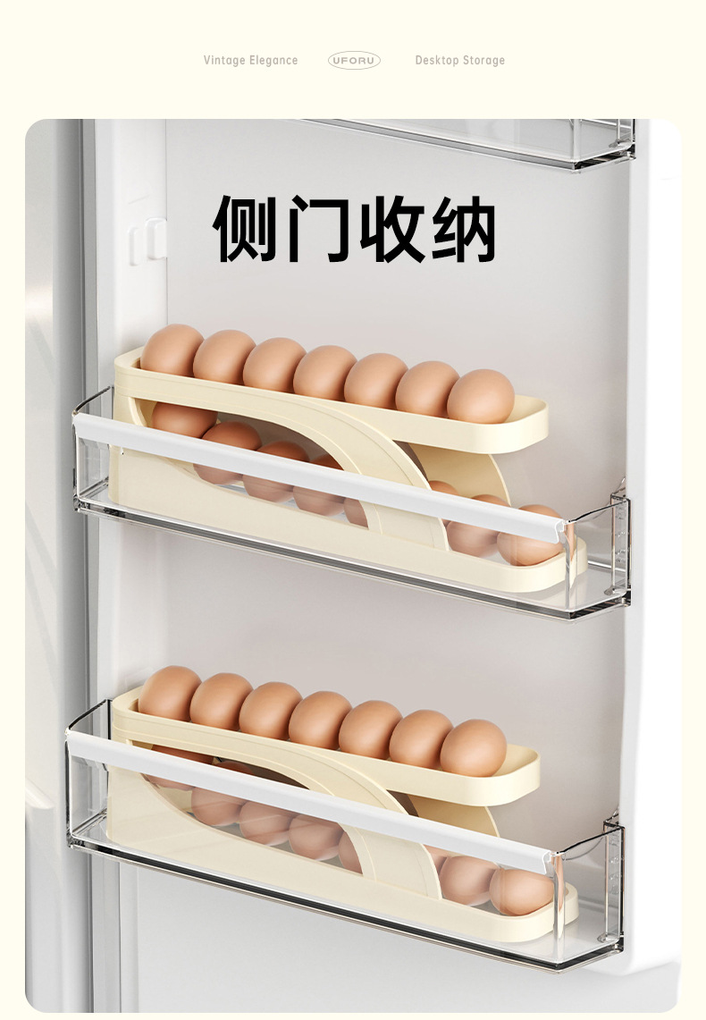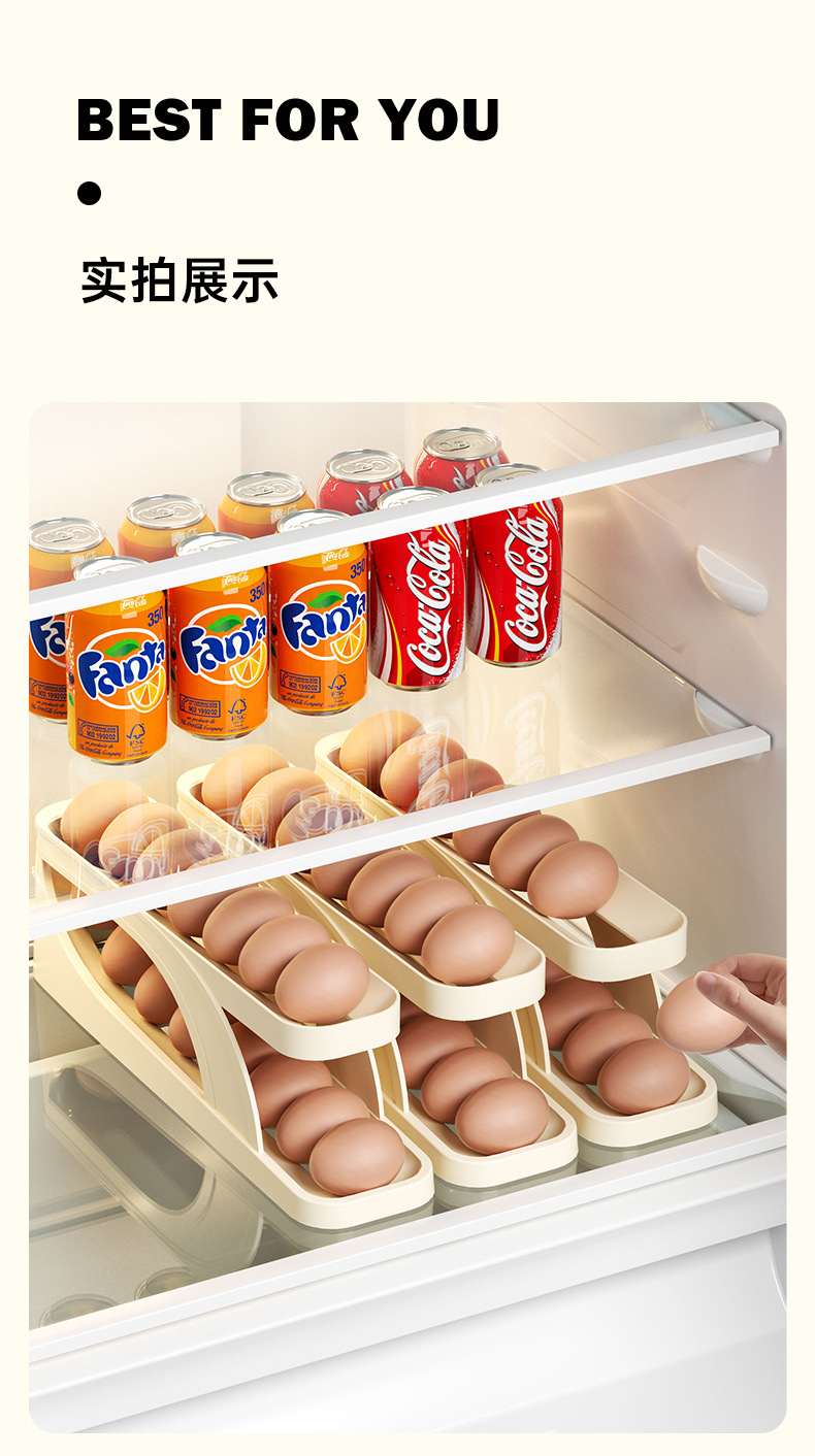 Household Kitchen Egg Storage Box (Single), Large-Capacity, Double-Layer Slide Type Automatic Egg Box For Refrigerator Side Door