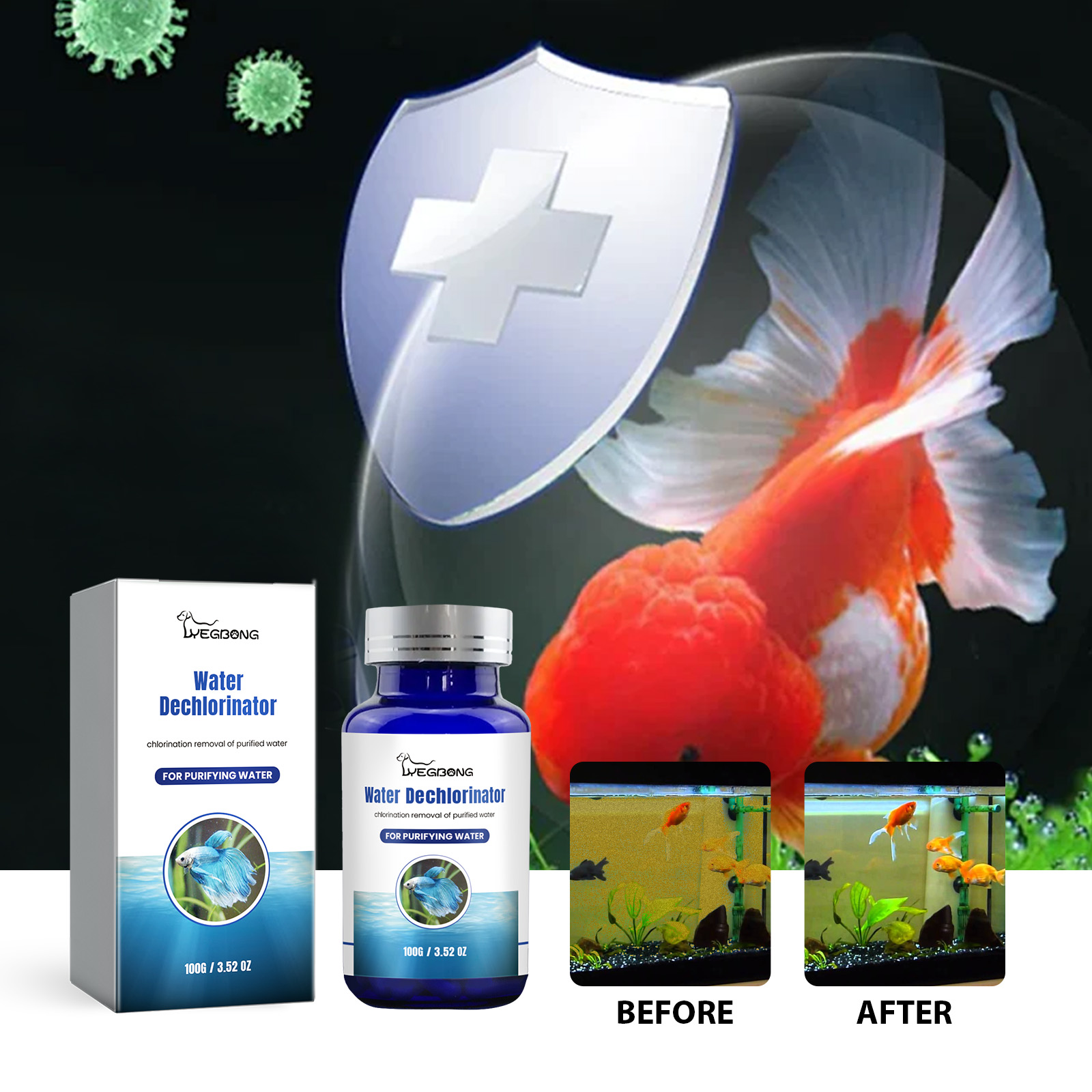 Yegbong Water Dechlorinator, Fish Pond Cleaning Decontamination Deodorization Algae Water Clarifying Water Effervescent Tablets