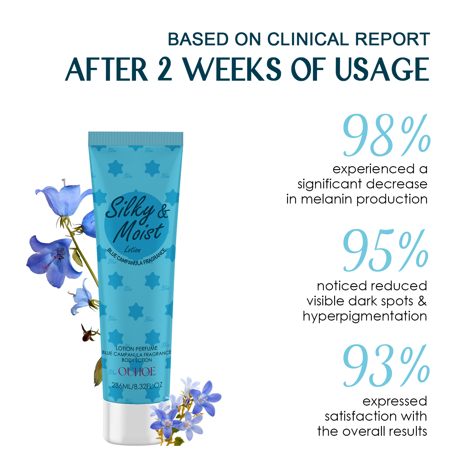 我们的身体化妆水含有蓝风铃提取物、甘油、维生素E。它可以使大腿褪色,改善腋下黑抑制黑色因子缓解色素沉着全白透明。它的使用方法很简单:首先,用温水清洁皮肤,确保面部清洁。取适量面霜均匀涂抹于面部,用指尖轻轻按摩,帮助吸收。身体化妆水美白皮肤,腋窝美白保湿,缓解干燥,防止大腿擦伤导致皮肤变黑,最快2周就能看到结果,为健康的皮肤提供额外的水分。