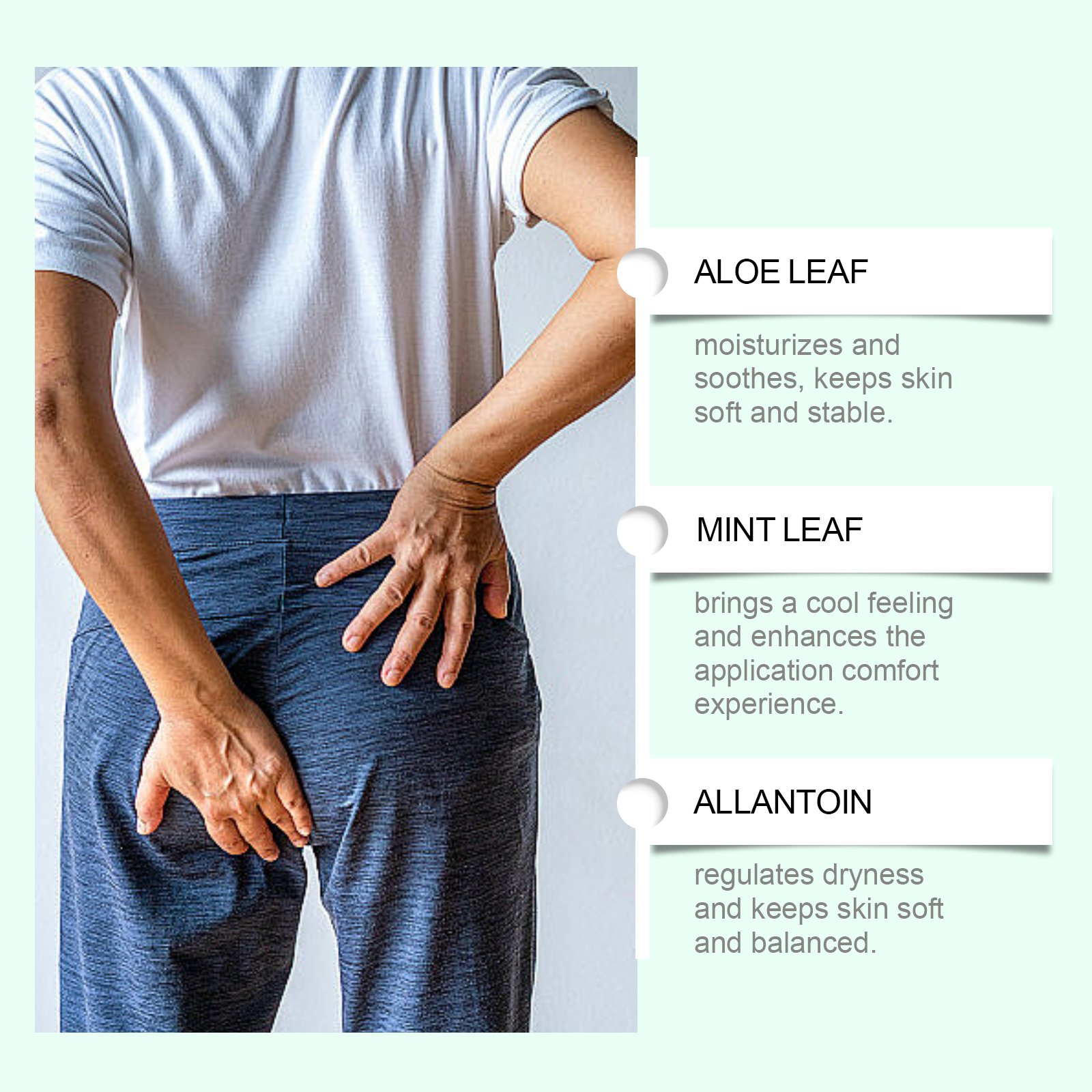 我们的身体护理霜,由芦荟叶、薄荷叶精心调配而成。专为调节干燥并保持皮肤柔软和平衡设计。使用方法极为便捷:清洁肛门周围的皮肤并保持干燥,将适量本品均匀涂抹于肛门周围的皮肤上,并轻轻按摩直至完全吸收。适合在不适时日常使用,温和覆盖关键区域,日常的工作和休息管理有助于保持局部舒适。