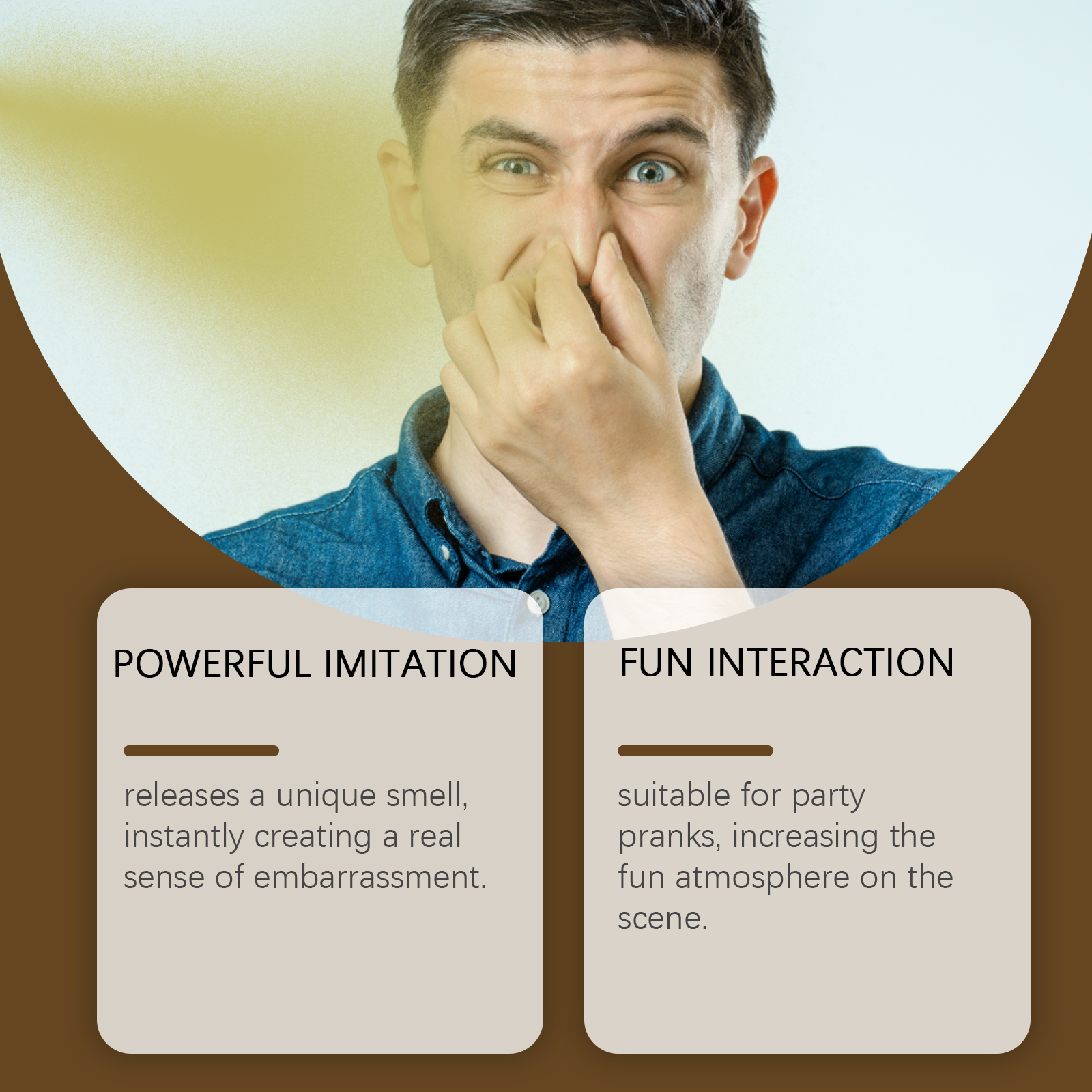 我们的臭屁喷雾,由氨水、聚山梨醇酯-80精心调配而成。专为释放一种独特的气味,瞬间营造出一种真正的尴尬感设计。使用方法极为便捷:充分摇匀喷雾瓶,并找到一个恶作剧的目标区域。按压喷嘴,将喷雾喷向目标区域。喷酒后,迅速离开目标区域,以避免被发现或受到气味的影响。使用后,建议打开门窗以保持空气流通,并尽快消除气味。并且可以适合用于派对恶作剧,增加现场的欢乐氛围。