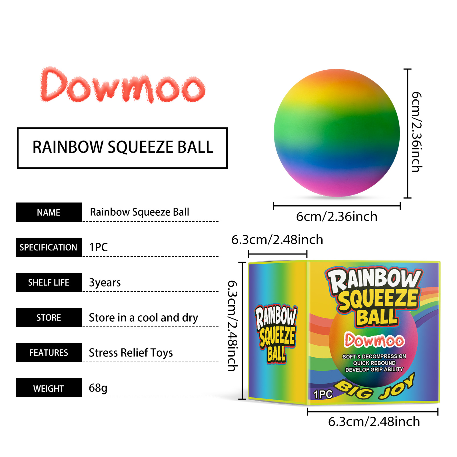 Dowmoo Rainbow Stress-Relieving Ball Rainbow Stress-Relieving Ball Kneading Fun Slow Rebound Stress-Relieving Toy Soft Rubber Squeeze Kneading
