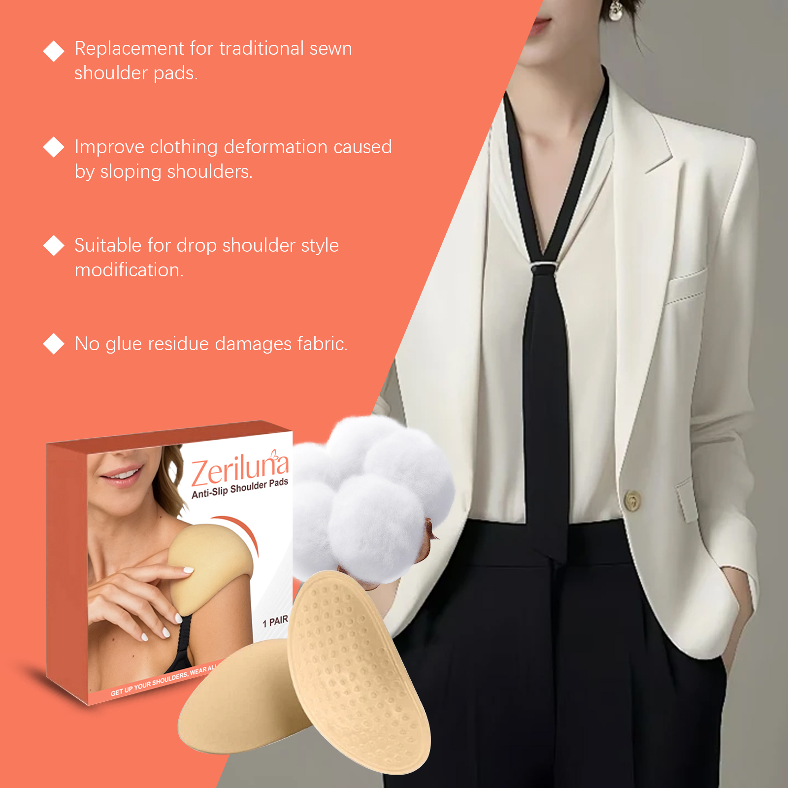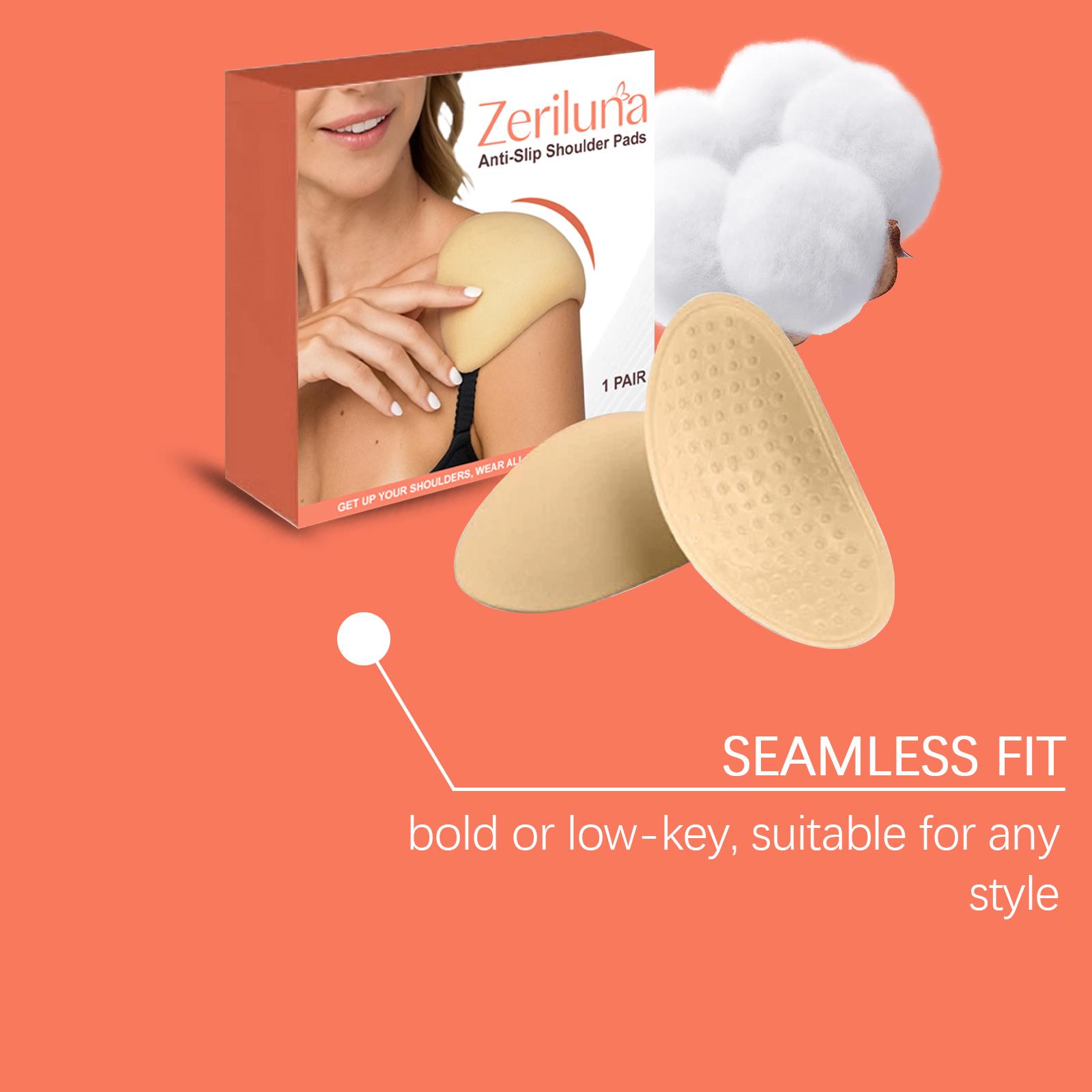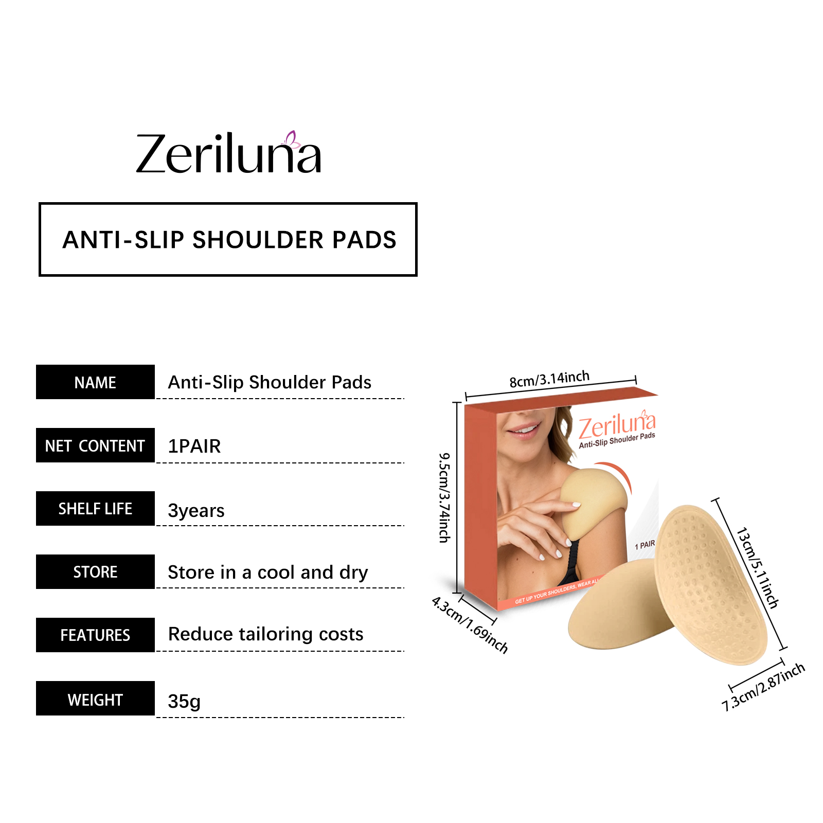 Zerilina Anti-Slip Shoulder Pads, With Horizontal And Vertical Shoulder Widths, Are Shaped And Can Be Shifted For Both Thin And Thick Clothing. They Are Washable And Reusable