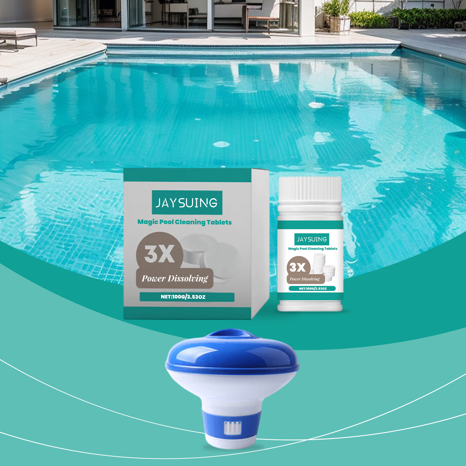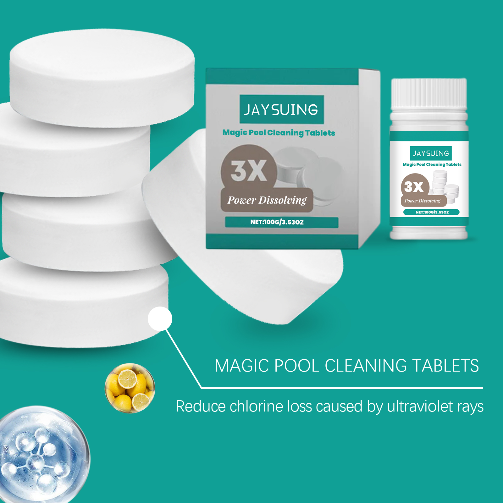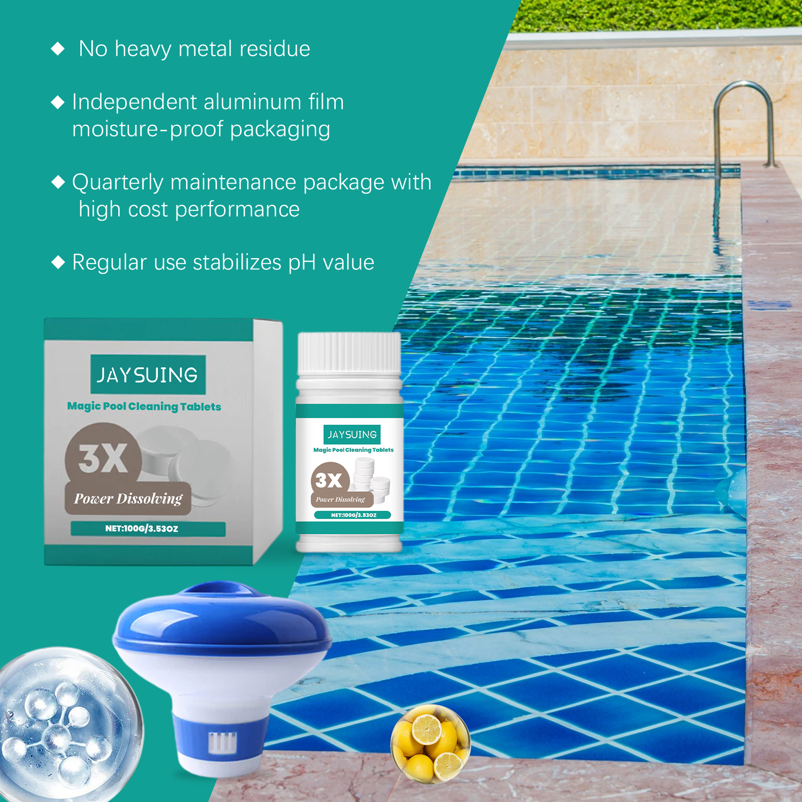 Jaysuing Swimming Pool Cleaning Tablets, Daily Private Swimming Pool Cleaning, Scale Removal, Odor Removal, Instant Cleaning Tablets