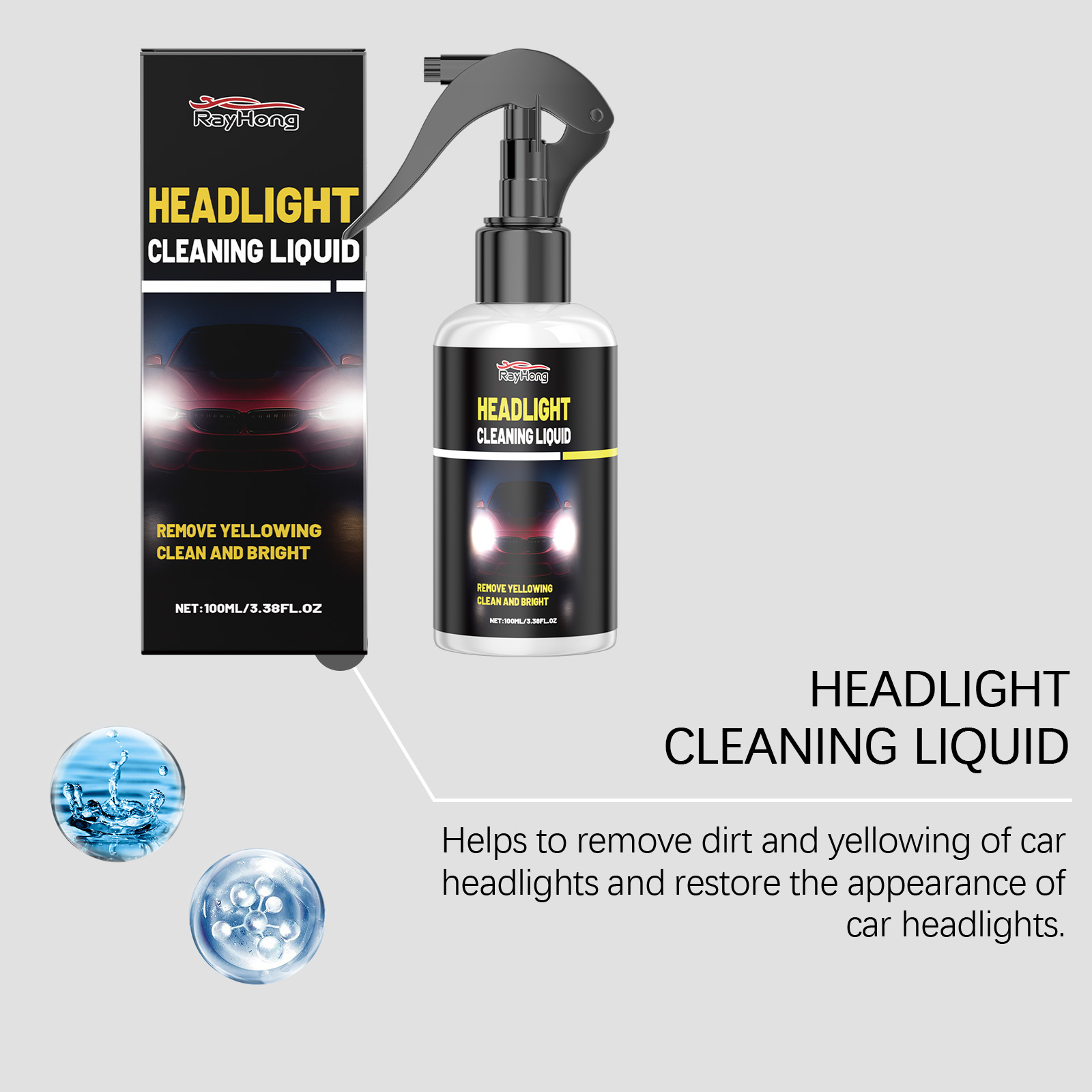 Rayhong Car Headlight Cleaner, Car Headlight Maintenance, Stain Removal, Brightening, Polishing, Headlight Care Agent