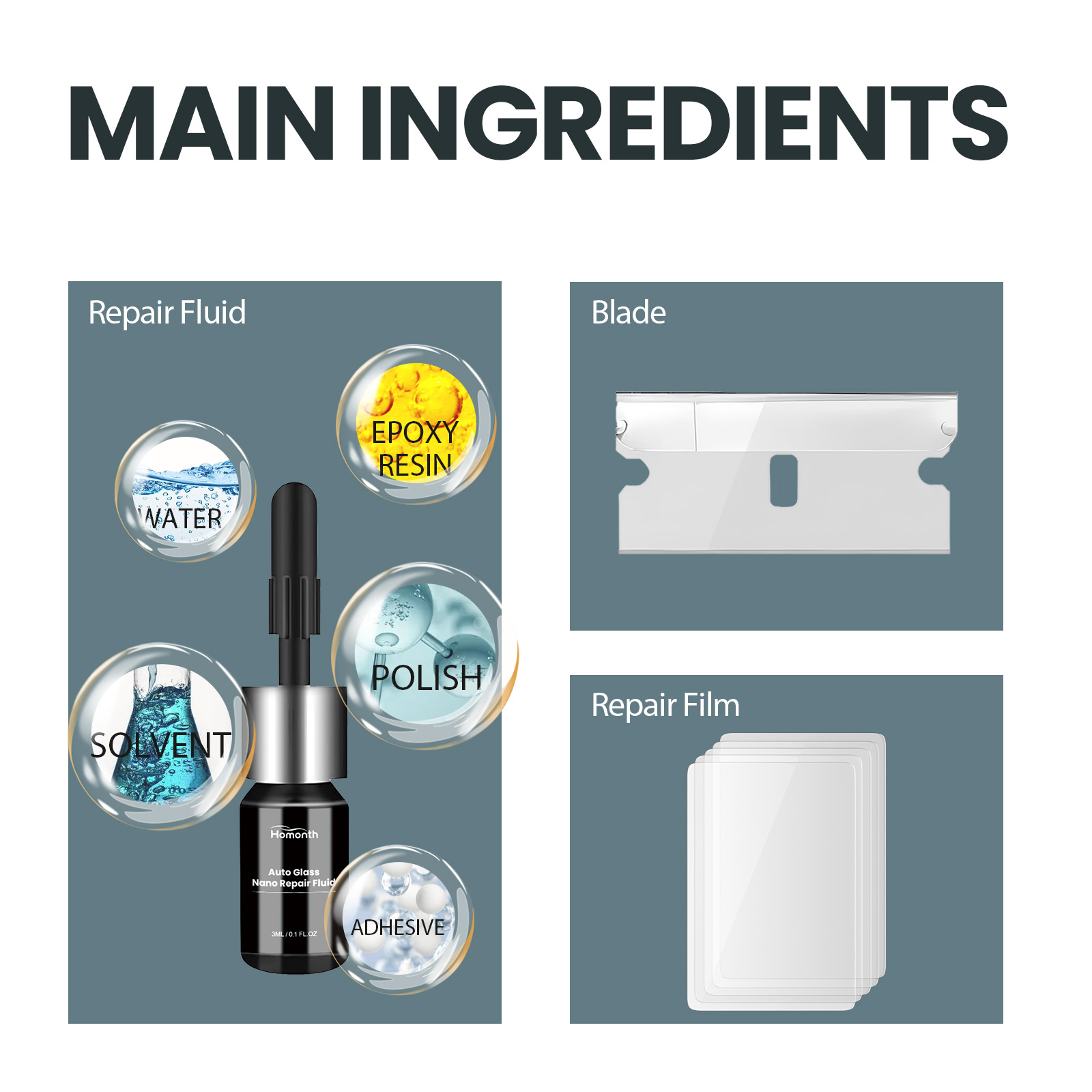 Homonth Automotive Glass Nano Repair Liquid: Clear View Crack Repair Liquid For Car Windshields