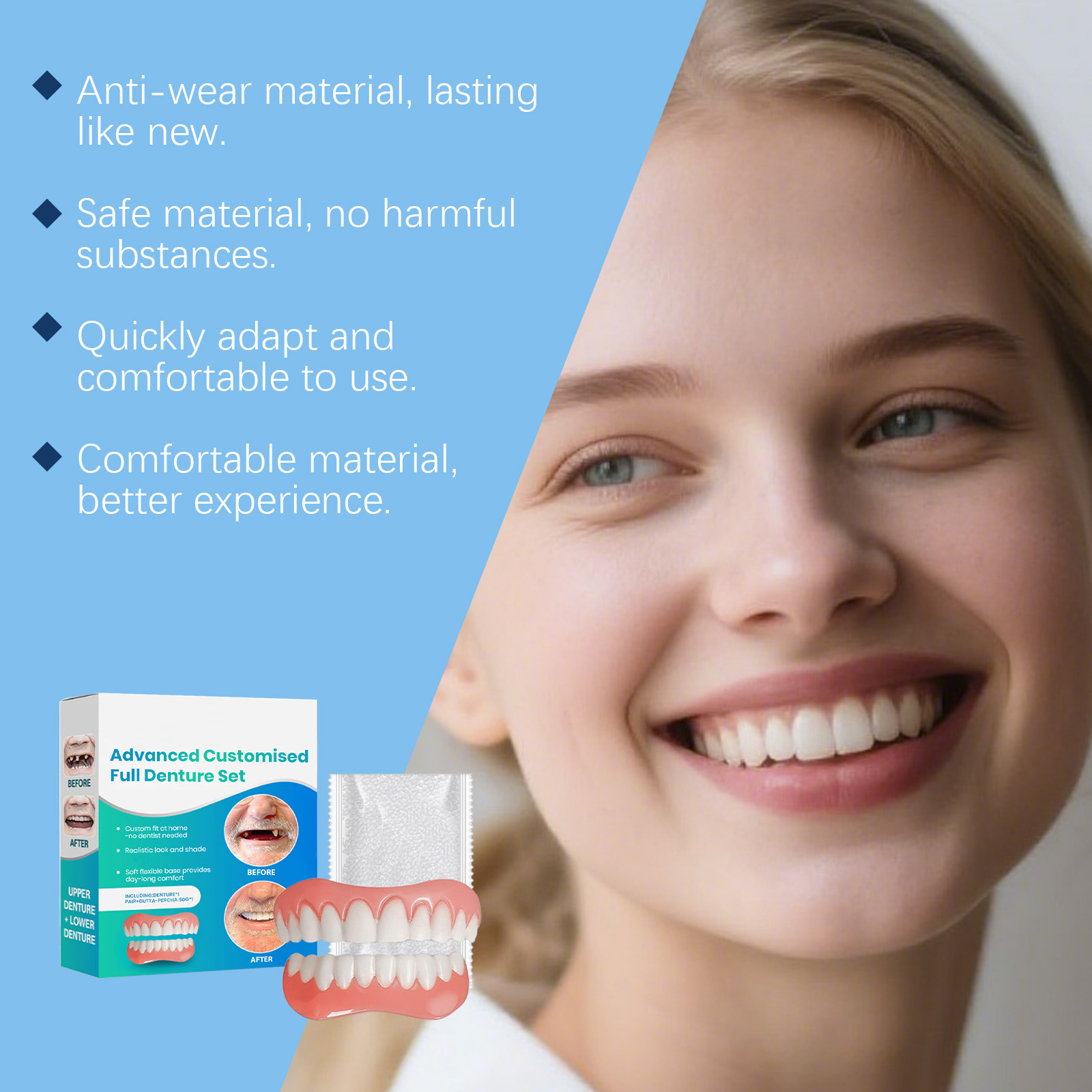 AMZ Denture Sets, Daily Teeth Enhancement Sets, Smile Improvement, Beauty And Comfort, Natural Material Denture Sets