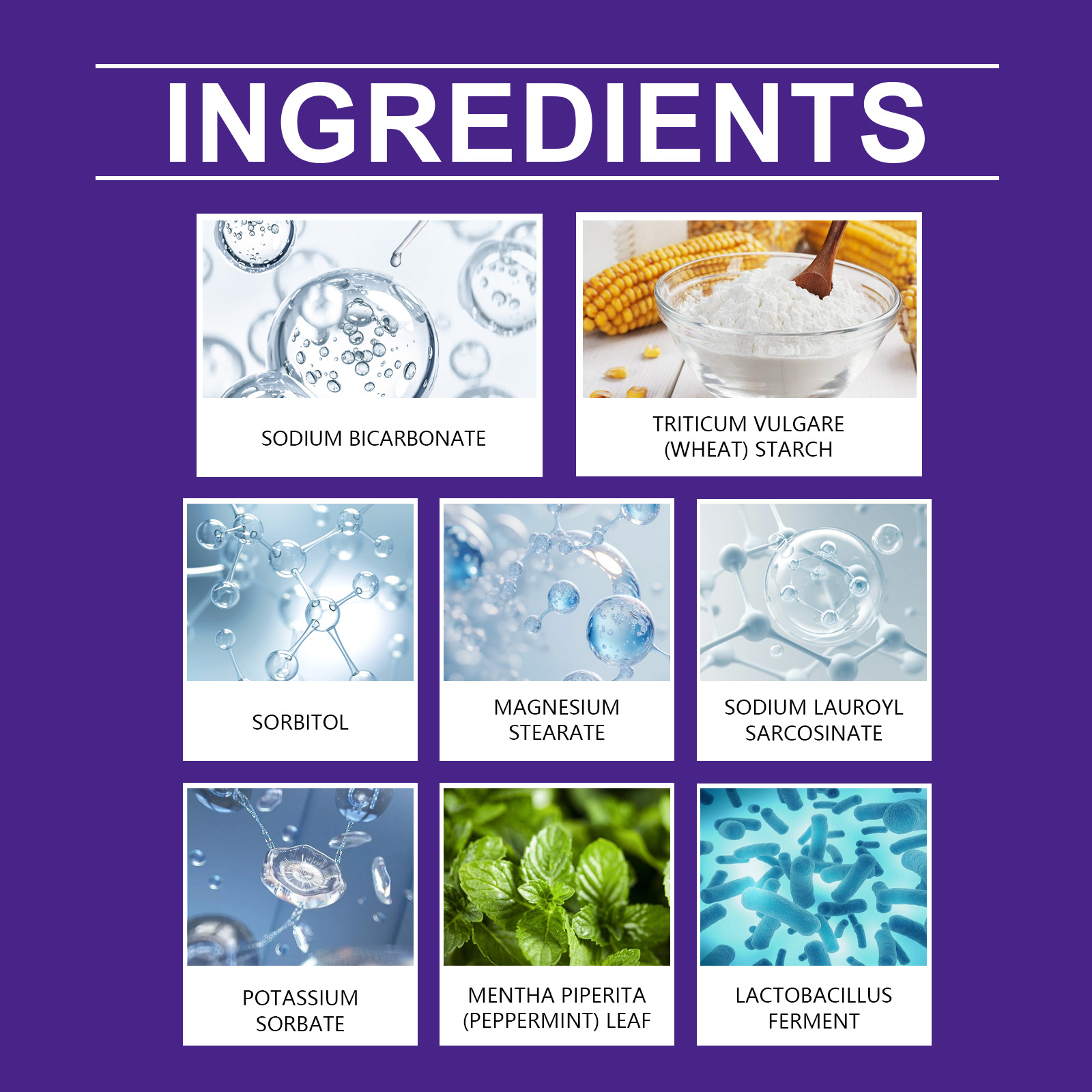 | 成分 | 碳酸氢钠、玉米淀粉、山梨(糖)醇 |