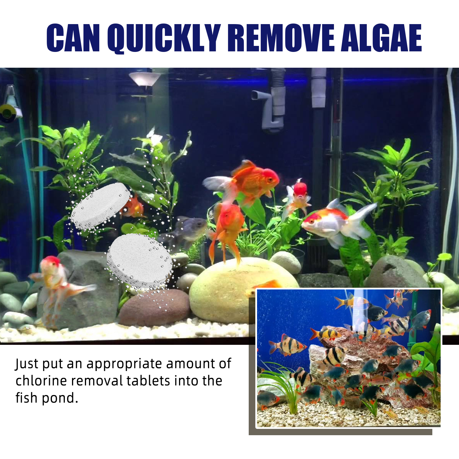 Yegbong Fish Pond Chlorine Removal Tablets, Aquarium Fish Tank Cleaning Decontamination Algae Removal Water Quality Clarifying Water Effervescent Tablets