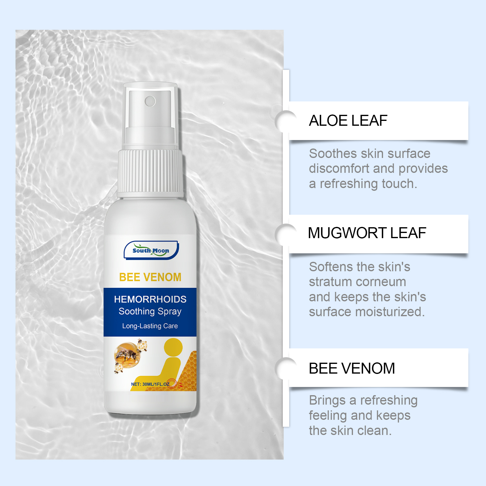 我们的蜂毒身体护理喷雾,由芦荟叶、艾蒿叶精心调配而成。专为温和护理痔疮,舒缓受刺激的皮肤设计。使用方法极为便捷:清洁私处肌肤并保持干燥,喷洒适量本品在肛周肌肤上,待其吸收即可。并且它可以减少瘙痒,改善血液循环,减少肿胀,缓解灼热感,支持皮肤修复。