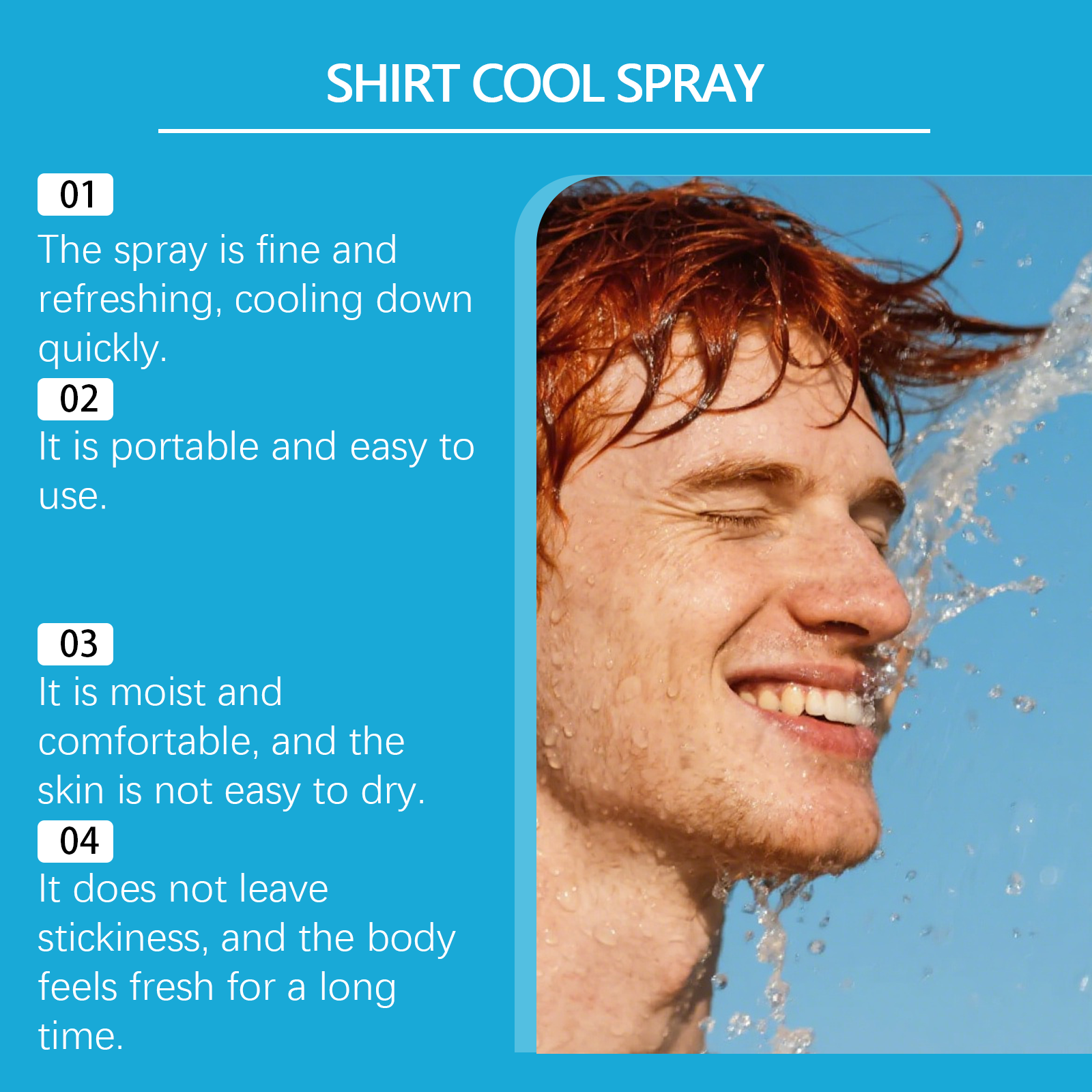 我们的清凉喷雾,由变性乙醇、甘油精心调配而成。专为缓解高温引起的不适设计。使用方法极为便捷:将喷雾保持在距离衣物表面至少10厘米的位置,并对每个区域喷洒3-5次。建议重点喷洒在腋下、背部、颈部等容易出汗的部位,以达到更好的冷却效果。并且可以带来快速的冷却感,适合炎热天气。